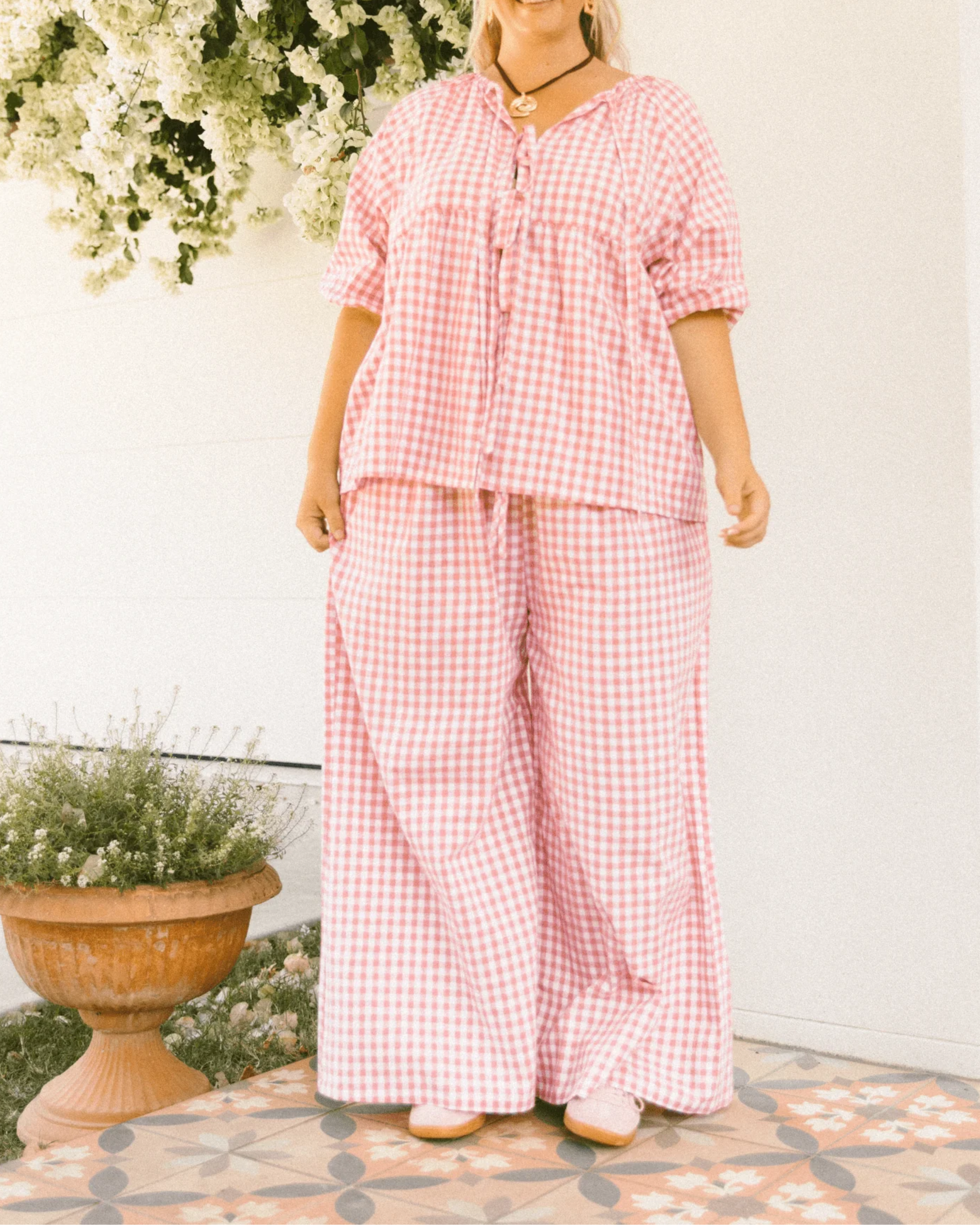 Comfort, but make it cute. Our Posey Pants are basically your new uniform for everything from couch hangs to cocktails. With their oversized, flowy fit and breezy fabric, these pants are ready to take you from bed to beach to “oh, this old thing?” brunch plans without breaking a sweat.