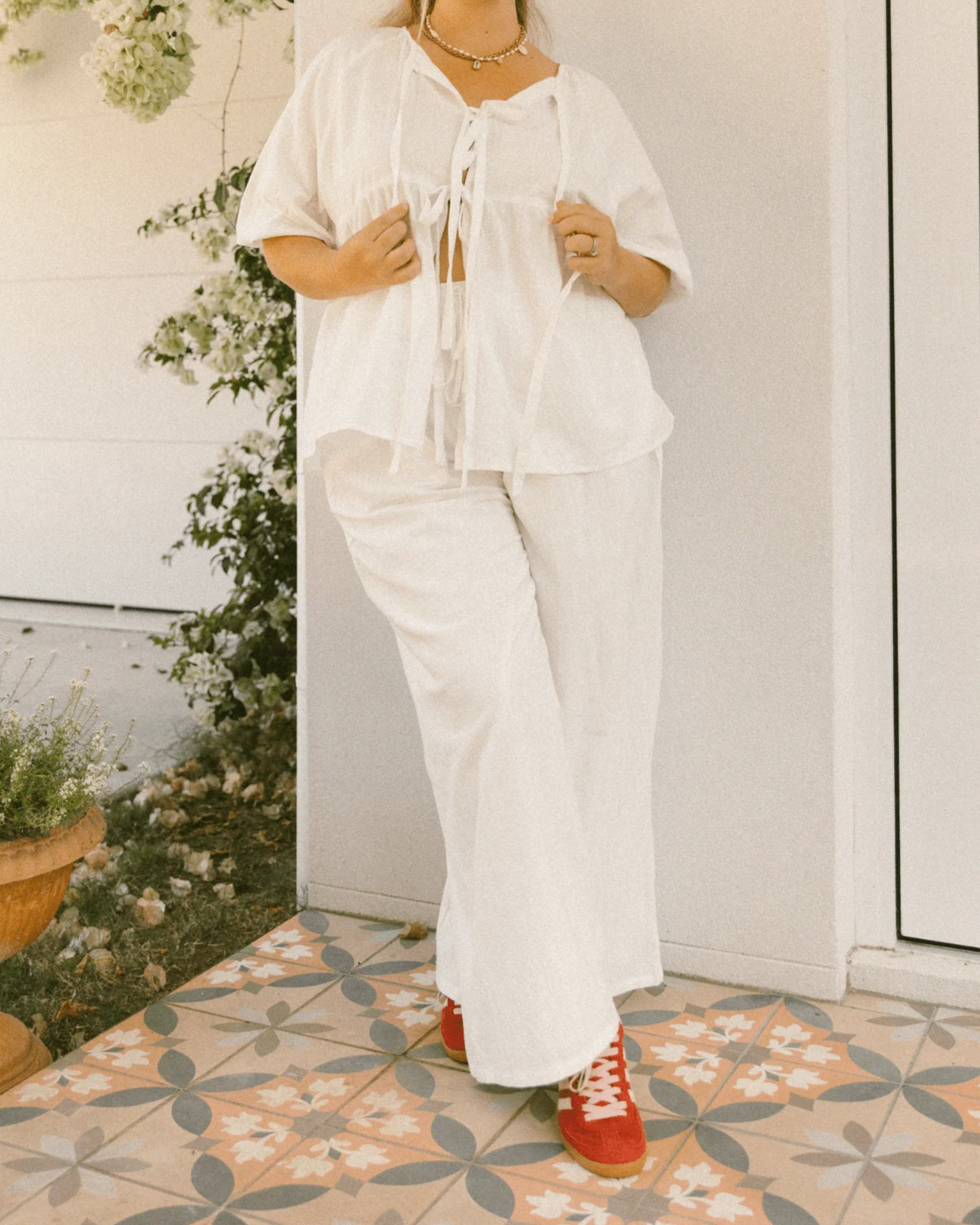 Comfort, but make it cute. Our Posey Pants are basically your new uniform for everything from couch hangs to cocktails. With their oversized, flowy fit and breezy fabric, these pants are ready to take you from bed to beach to “oh, this old thing?” brunch plans without breaking a sweat.