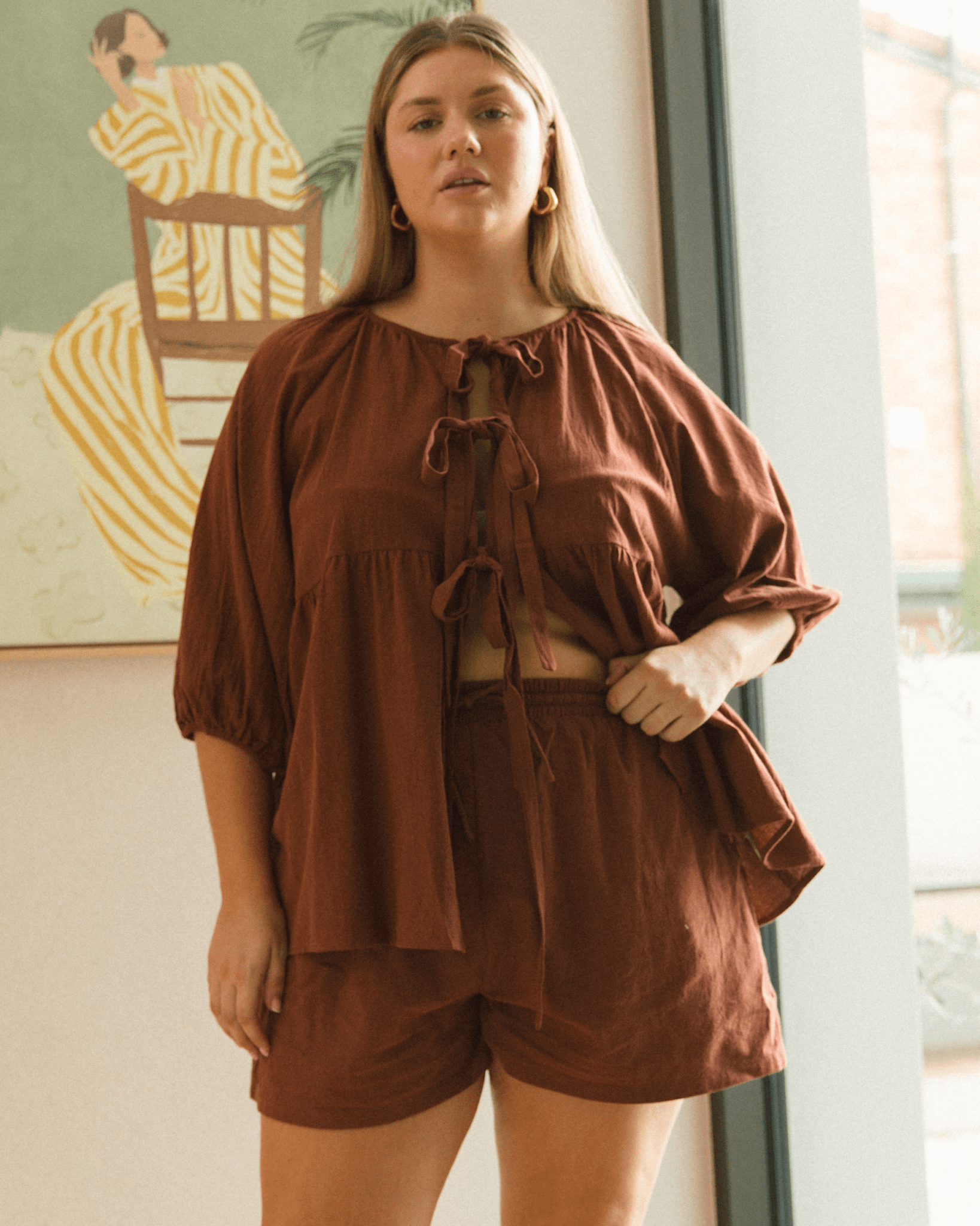 Breastfeeding? No worries babe. The Florence Top has a two-way zip on one side for easy, discreet feeds and a tie-up feature on the other – so you can wear it either way and still have easy access. Because comfort and cool should never be a trade-off.