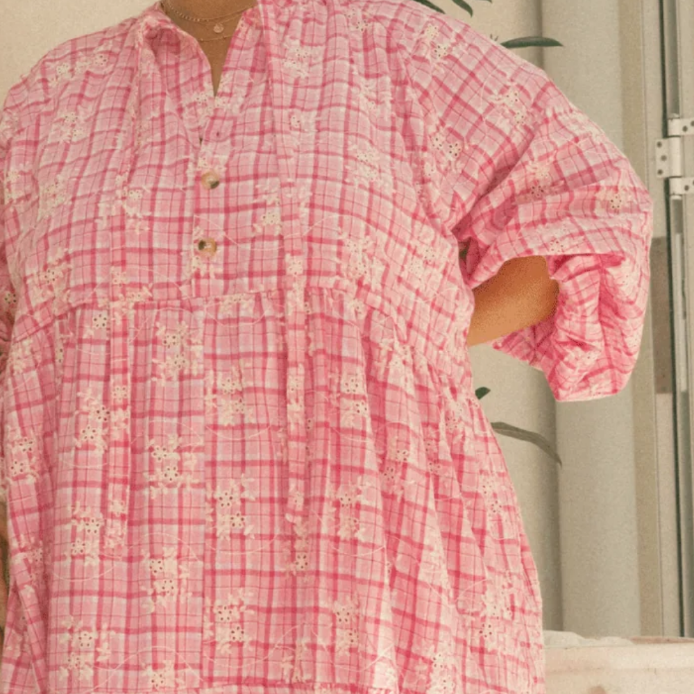 Maxi Avalon Smock Dress | Pink Gingham Embroidery