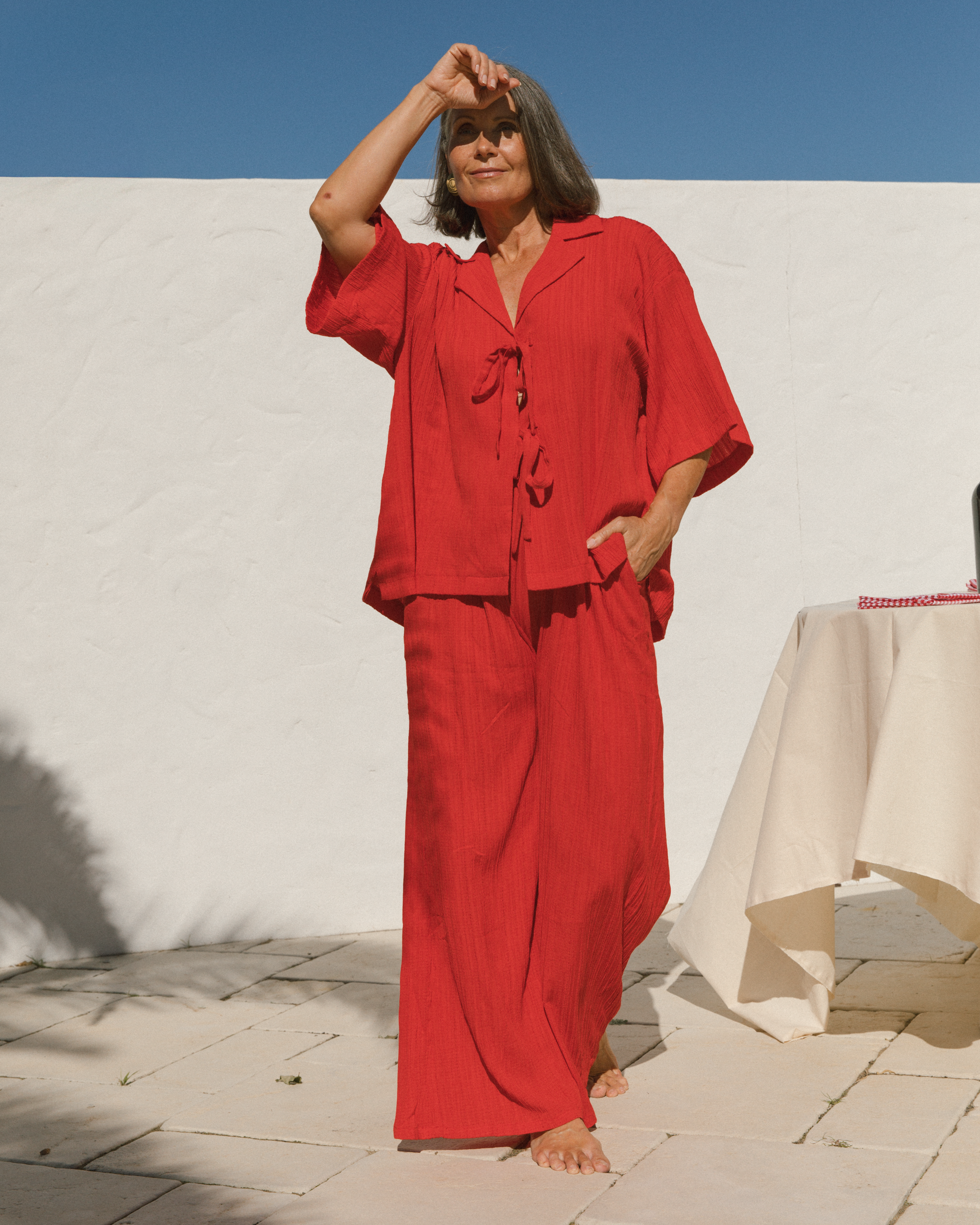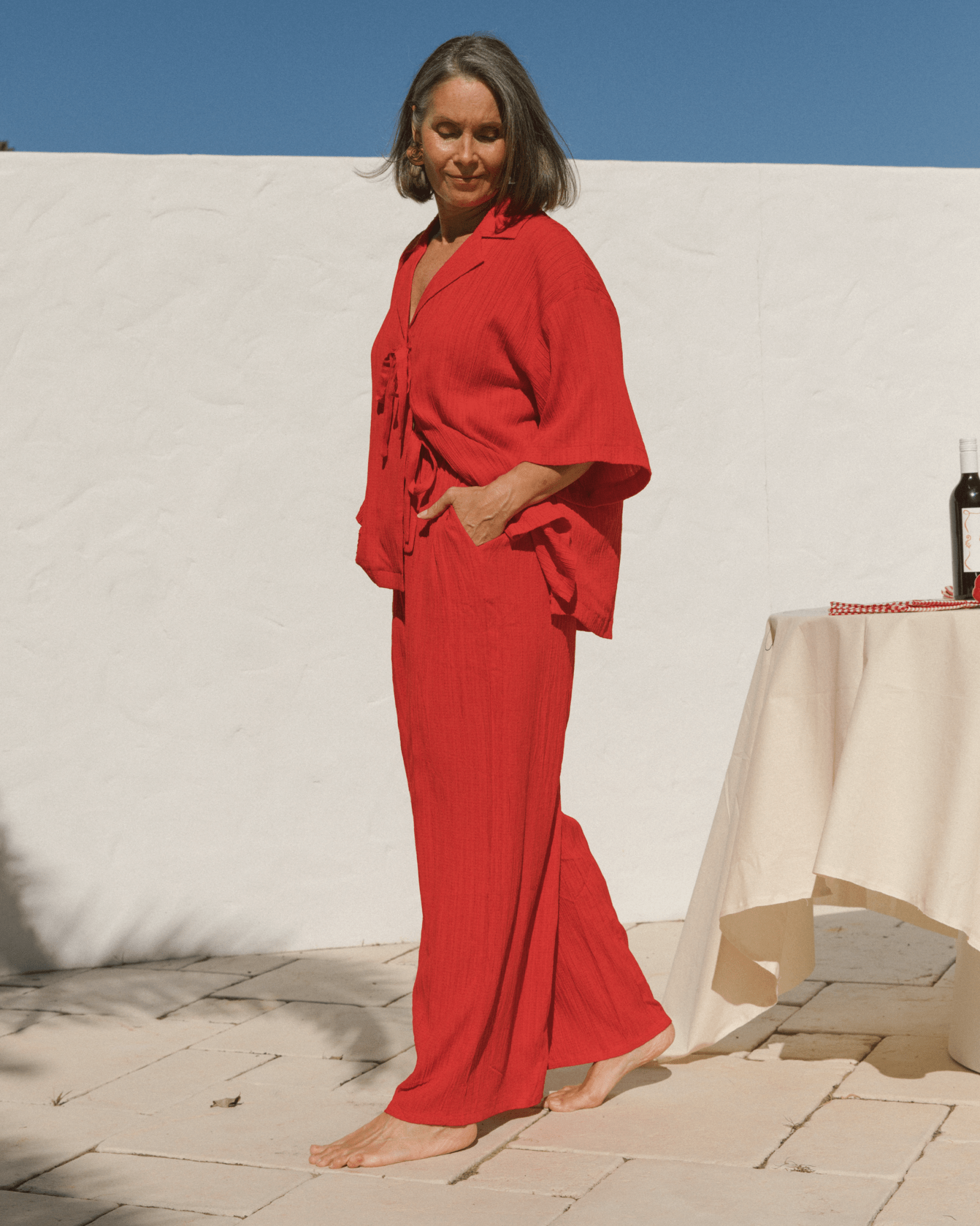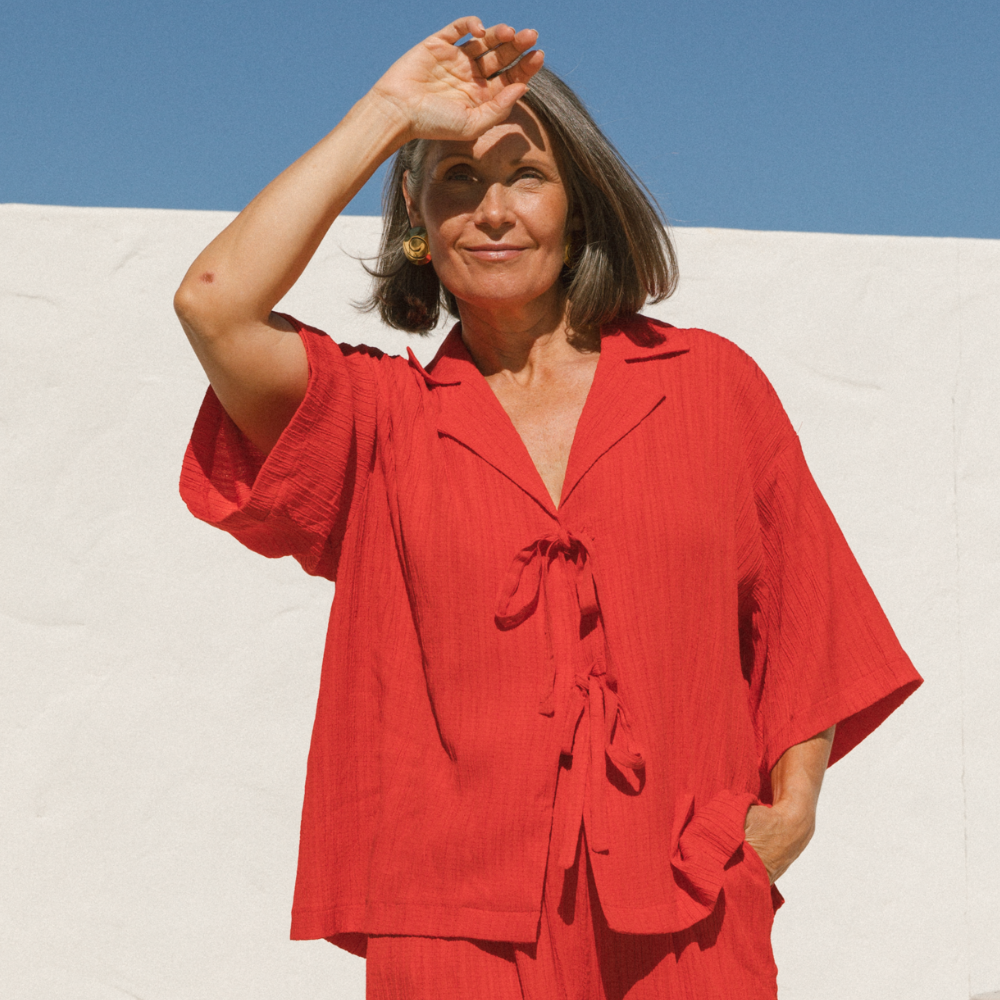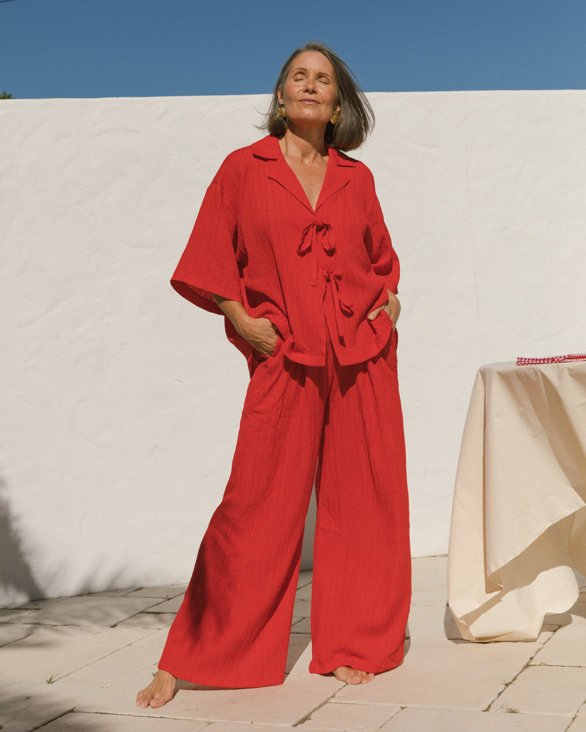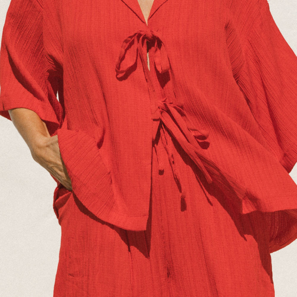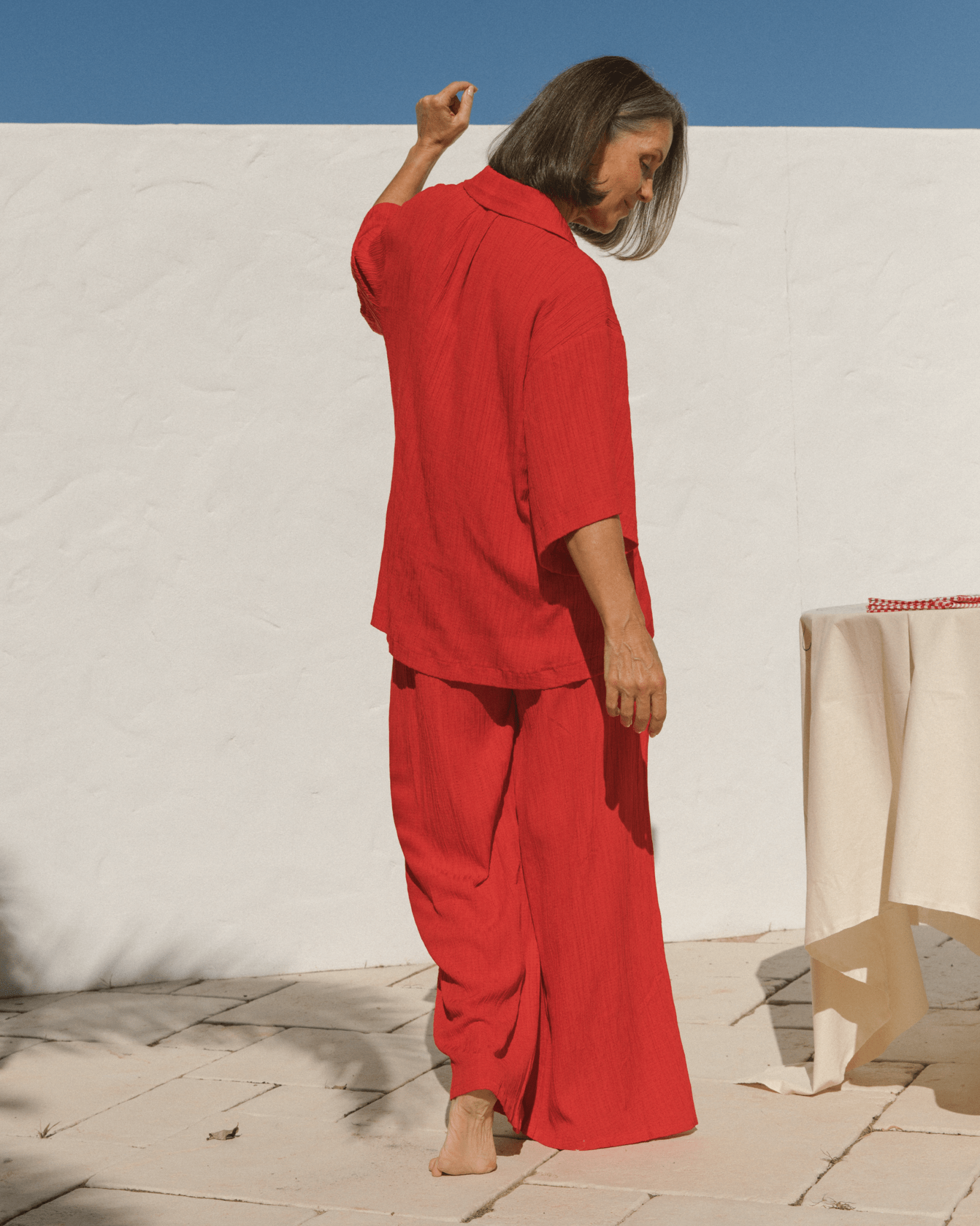 I am new to wearing red clothing as I have copper hair but the red crepe is to DIE FOR. The colour is so bright and the material is incredibly soft. I wore the shirt and crepe shorts to a hens and I got so many compliments!
