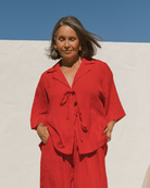 Pair the Billy Shirt with the Posey Pants for a chic matching set, or style it with denim for a casual yet effortlessly cool look. Whether you're at home, out for coffee, or heading to the beach, this breathable, oversized shirt is a must-have in your wardrobe.