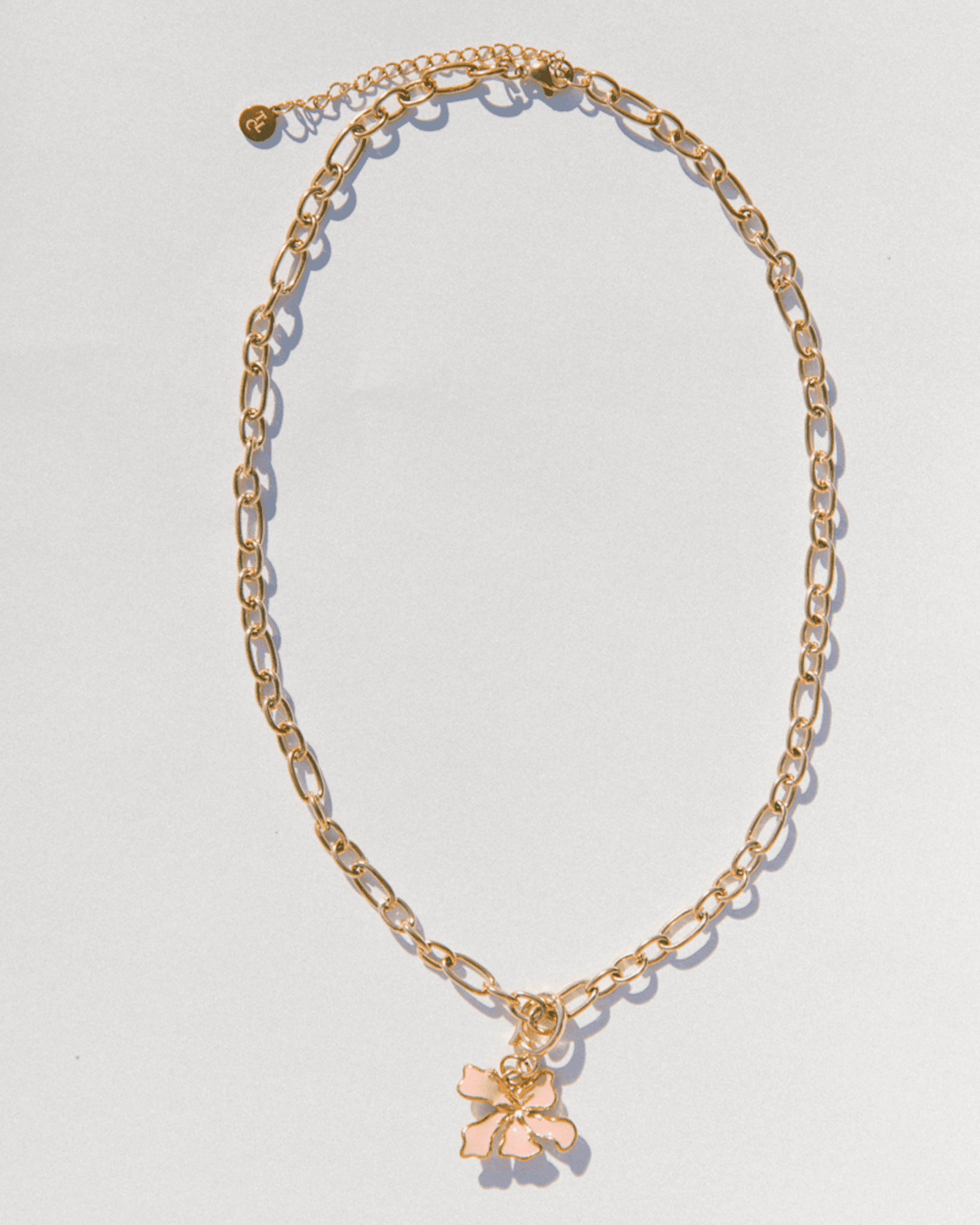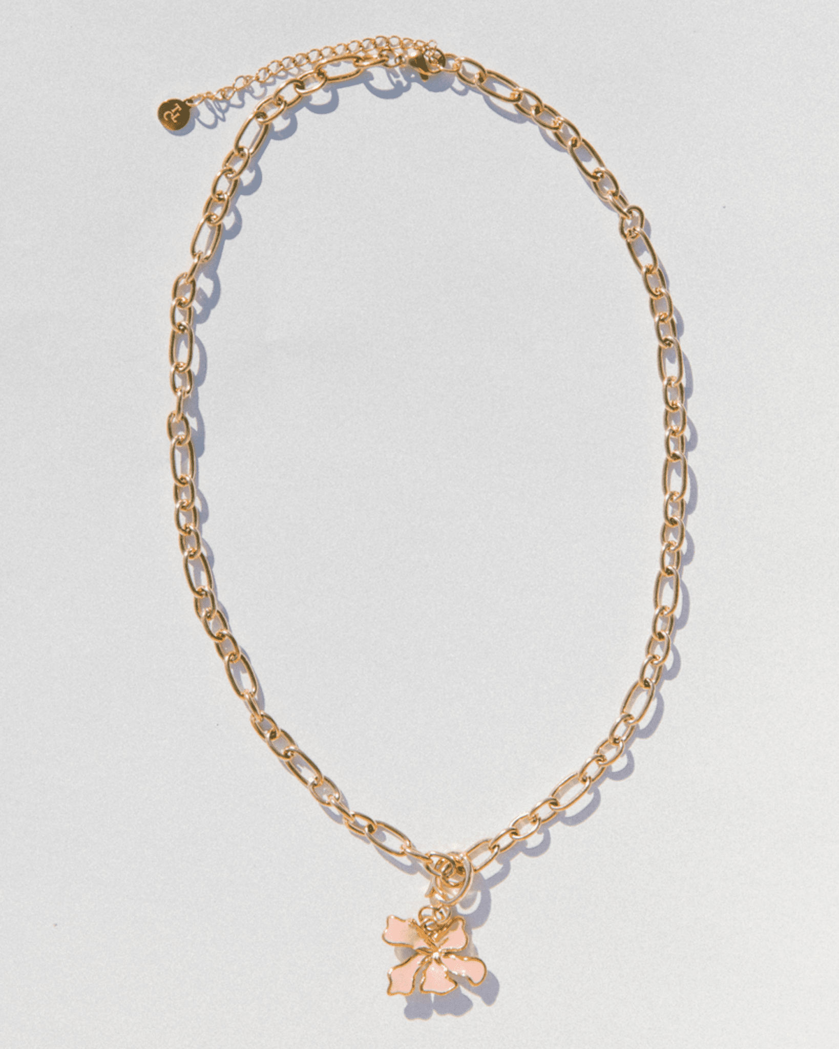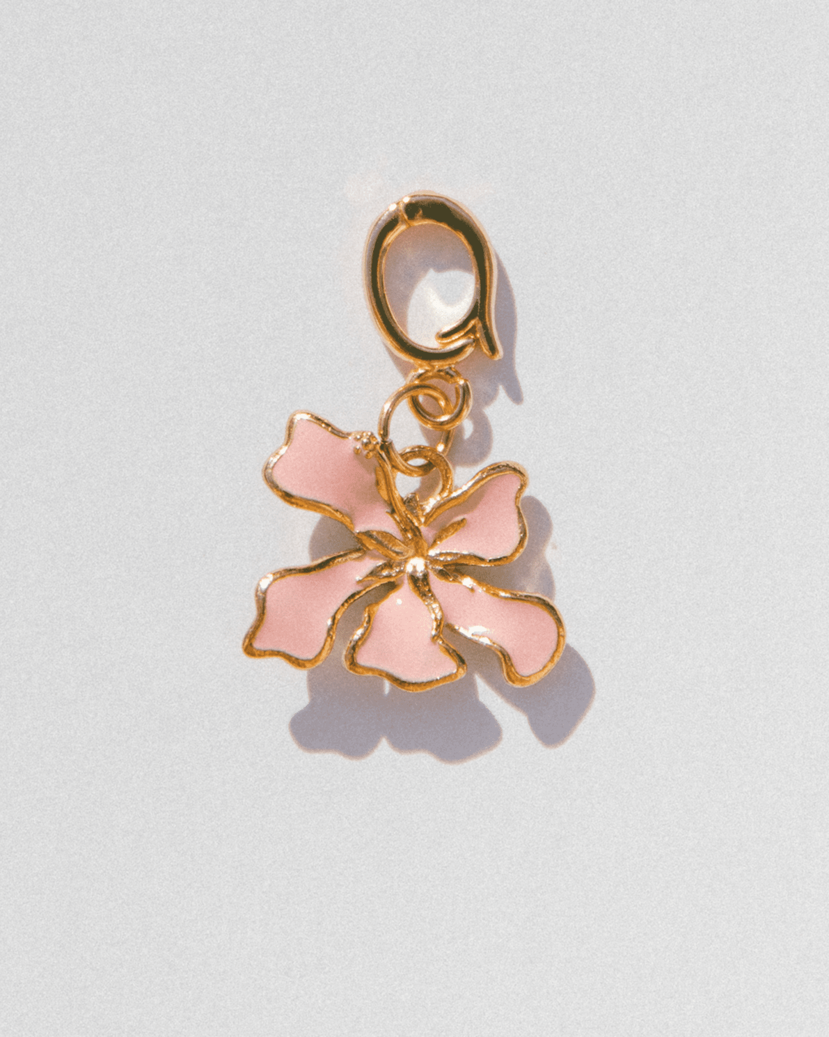 The Havana Flower Charm is an exclusive, limited edition charm created to perfectly match back with the Cabana Club collection. Featuring a soft pink flower design with gold detailing, it adds that playful, sunshine filled touch to your necklaces, bracelets, or charm stacks.