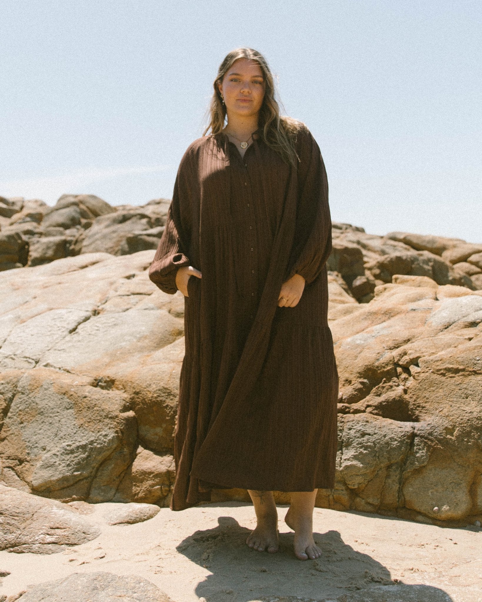 From airy smock dresses to structured lounge sets, this collection embodies The Lullaby Club’s signature aesthetic with Chekoh’s thoughtful approach to practicality. Whether you’re chasing little ones, grabbing a coffee, or soaking in the sun, these pieces are designed to keep up with you.