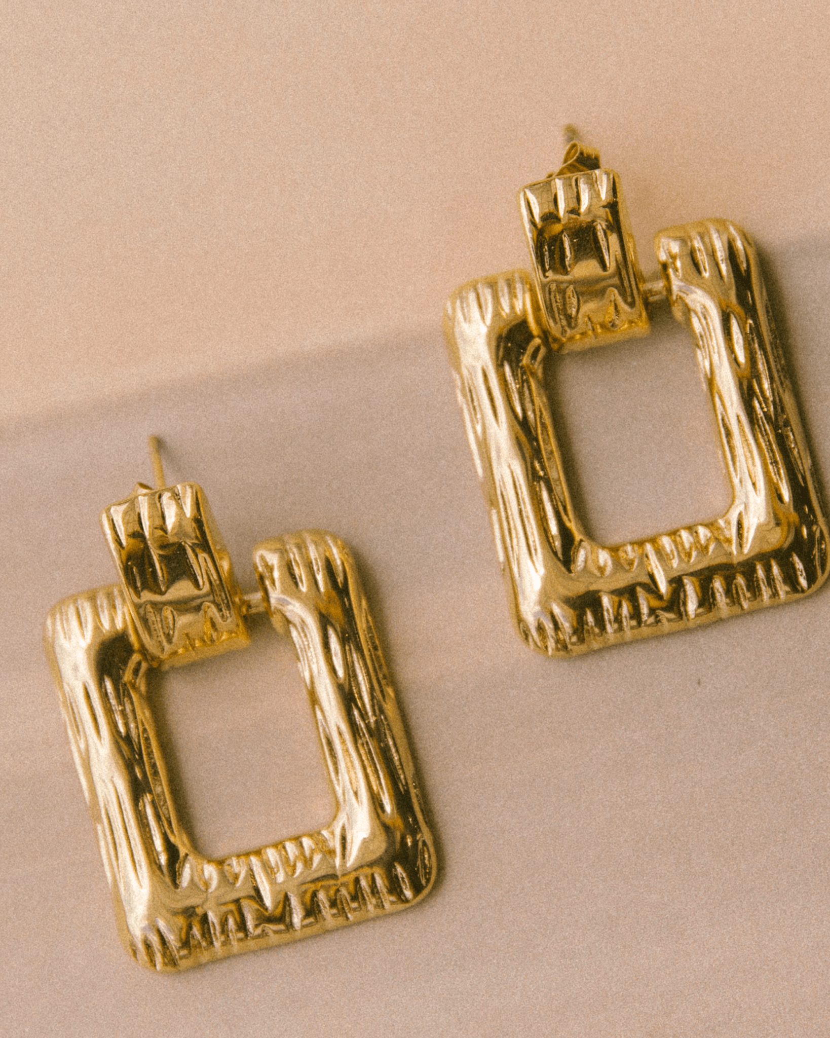 Bring bold geometric vibes to your accessory collection with the Golden Frame Earrings. Featuring a modern square design with textured detailing, these earrings make a striking statement without saying a word. Crafted from high-quality stainless steel and plated with 18K gold, they’re as durable as they are dazzling.