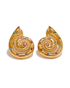 Introducing the Rain Conch Earrings in Gold, a stunning blend of elegance and sophistication. Crafted from 18ct Gold Plated Stainless Steel and adorned with sparkling Cubic Zirconia, these earrings exude luxury and glamour. The intricate conch design adds a touch of uniqueness, making them a standout accessory for any occasion. With a size of 29mm, these earrings are sure to make a statement while complementing your style. Elevate your look with the Rain Conch Earrings and add a touch of sparkle to your ensemble.