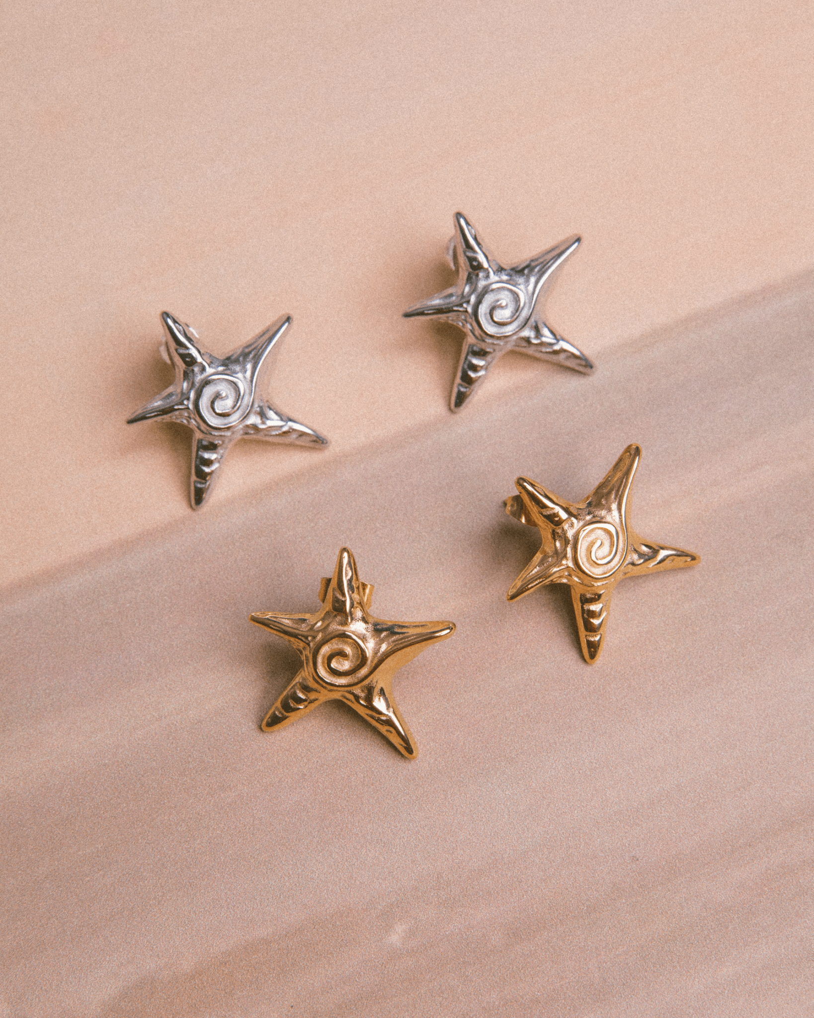 Elevate your accessory game with our Tempest Star Earrings - the perfect blend of chic and charm. Crafted from 18ct gold-plated Stainless Steel, these earrings boast a playful starfish design that adds a touch of whimsy to any look. The durable material ensures a luxurious finish, making these earrings suitable for any occasion. And for all-day wear, they are designed to be lightweight and comfortable. Bring the magic of the sea into your collection with the Tempest Star Earrings, the ultimate standout piece.