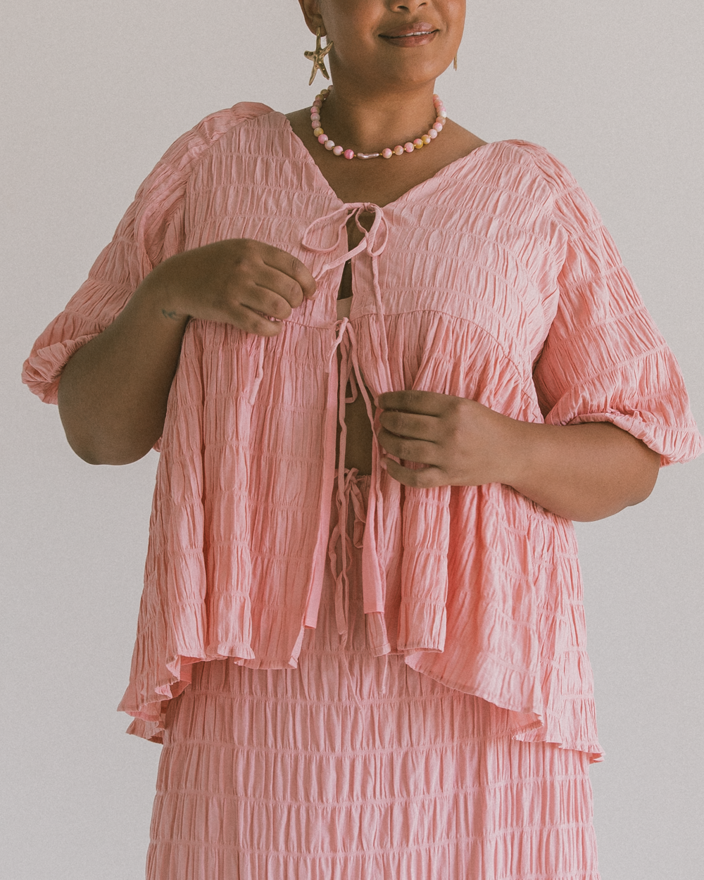 Crafted from 98% cotton & 3% spandex, the Frankie Top is your new everyday go-to with main character charm. Featuring a cross-over bust, floaty puff sleeves, and a cute front-tie moment, she’s breezy, easy, and ready for whatever your day throws at you.