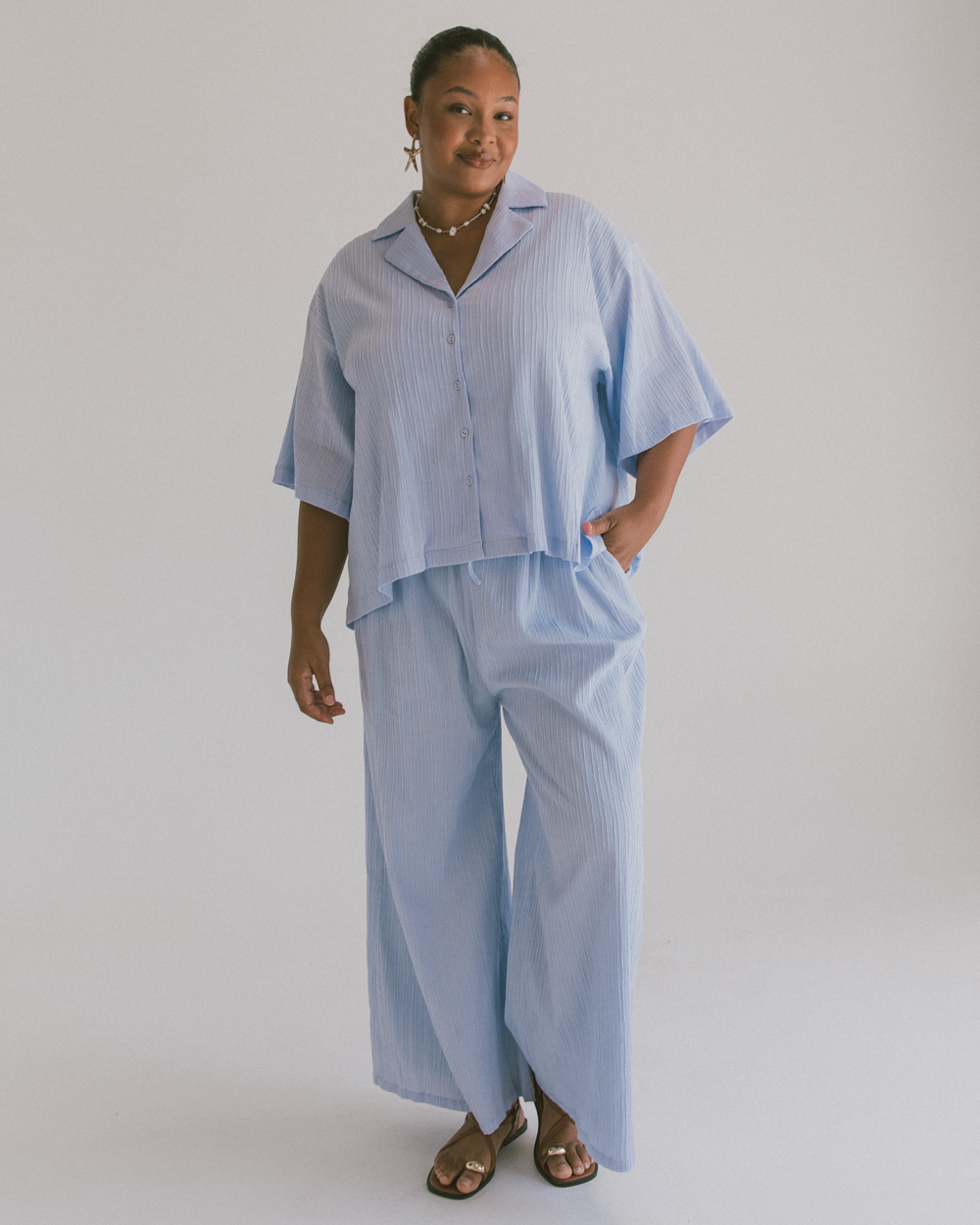 Comfort, but make it cute. Our Posey Pants are basically your new uniform for everything from couch hangs to cocktails. With their oversized, flowy fit and breezy fabric, these pants are ready to take you from bed to beach to “oh, this old thing?” brunch plans without breaking a sweat.