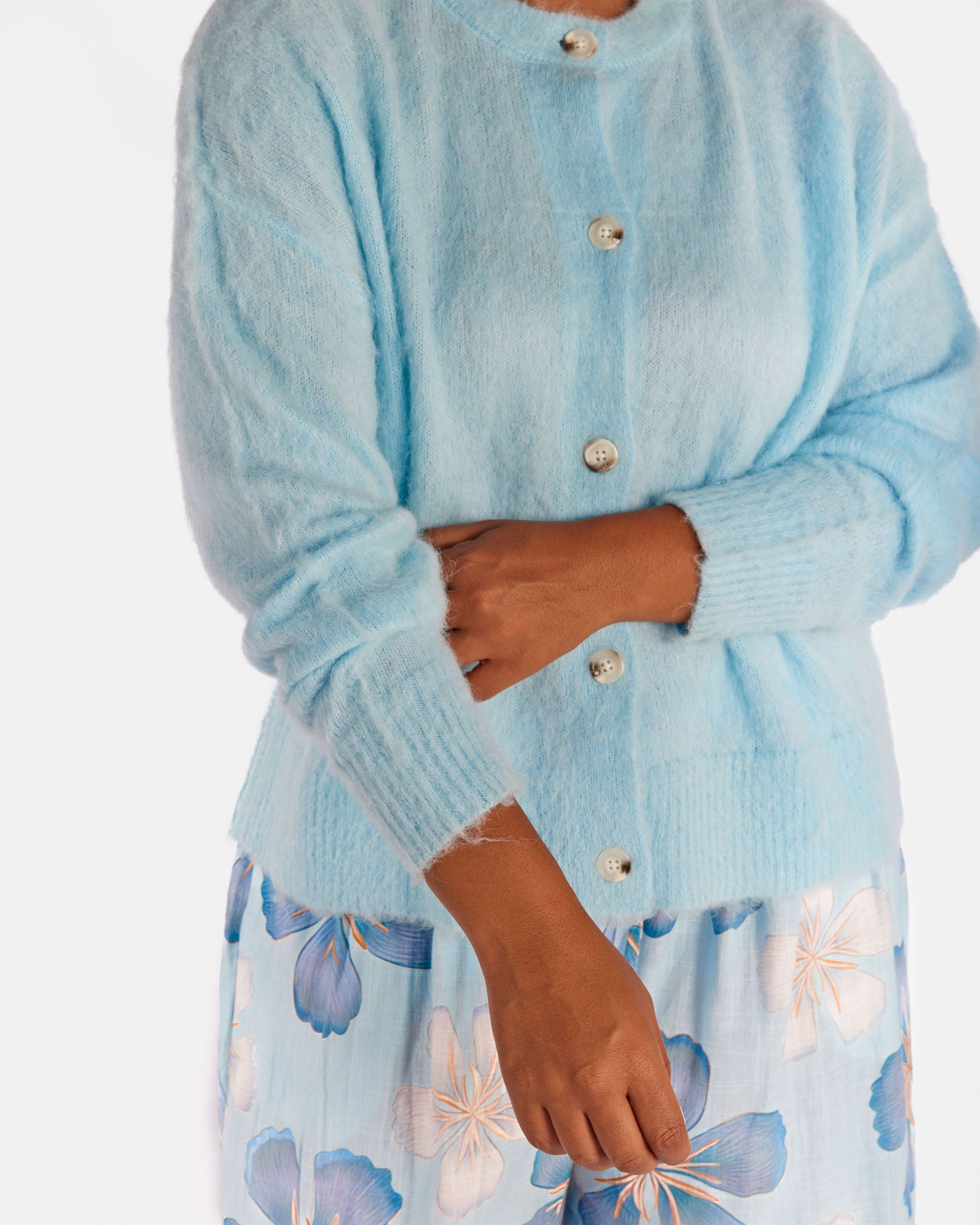 Soft, fluffy and lightweight, the Courtney Cardi is your easy throw on layer for cooler days. Finished with tortoiseshell buttons and a relaxed fit, it is cosy comfort made simple.