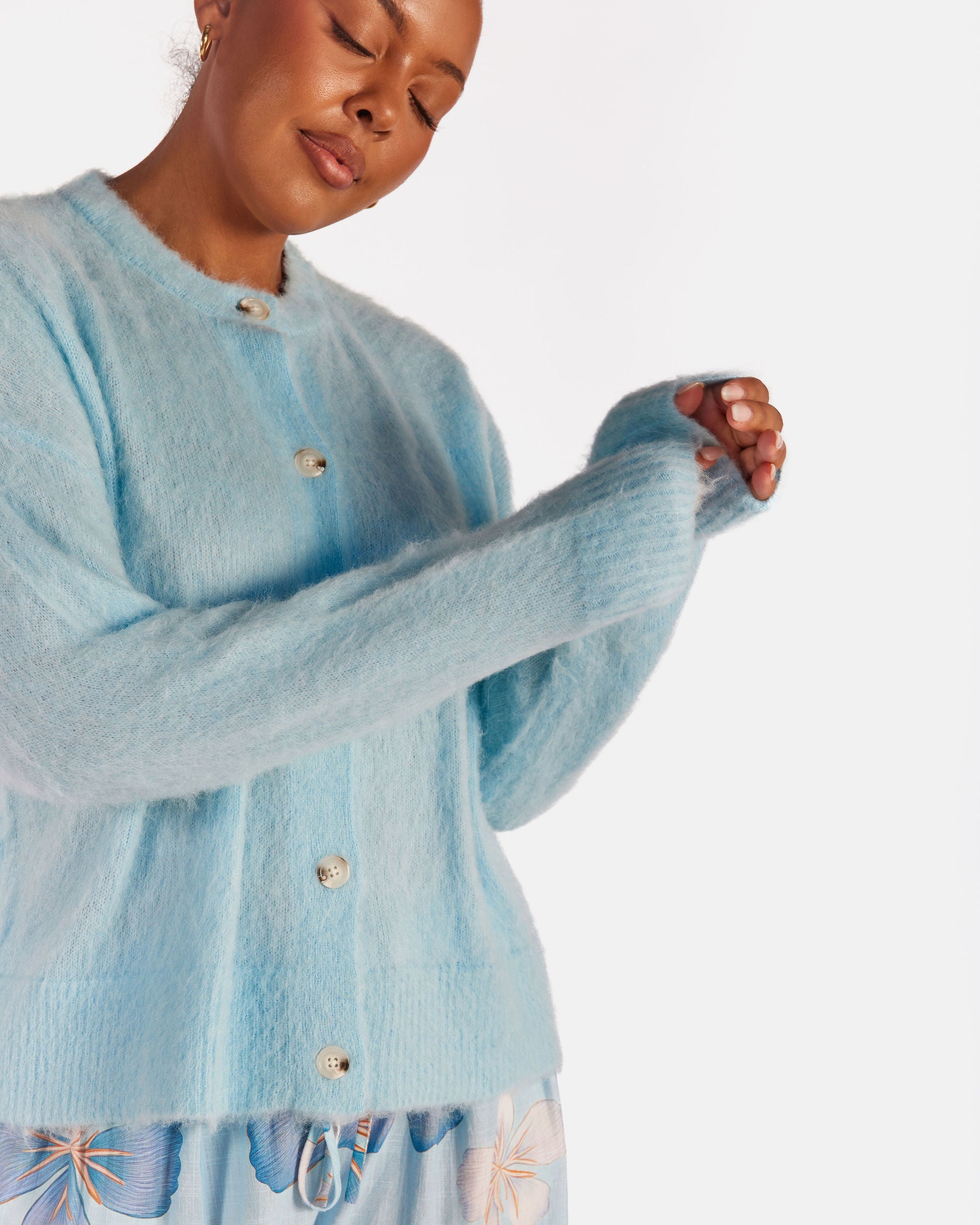 Meet the Courtney Cardi in Blue, your cosy throw on layer for cooler days, early mornings and nights when you just want to feel warm and comfy without feeling bulky. Soft, fluffy and easy to wear, this cardigan is made for real life layering.