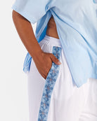 What makes this pair extra special is the jacquard knit side detail, featuring blue floral detailing with soft white accents running down the leg. It adds a subtle point of difference while still keeping the pants easy to style and very wearable.