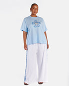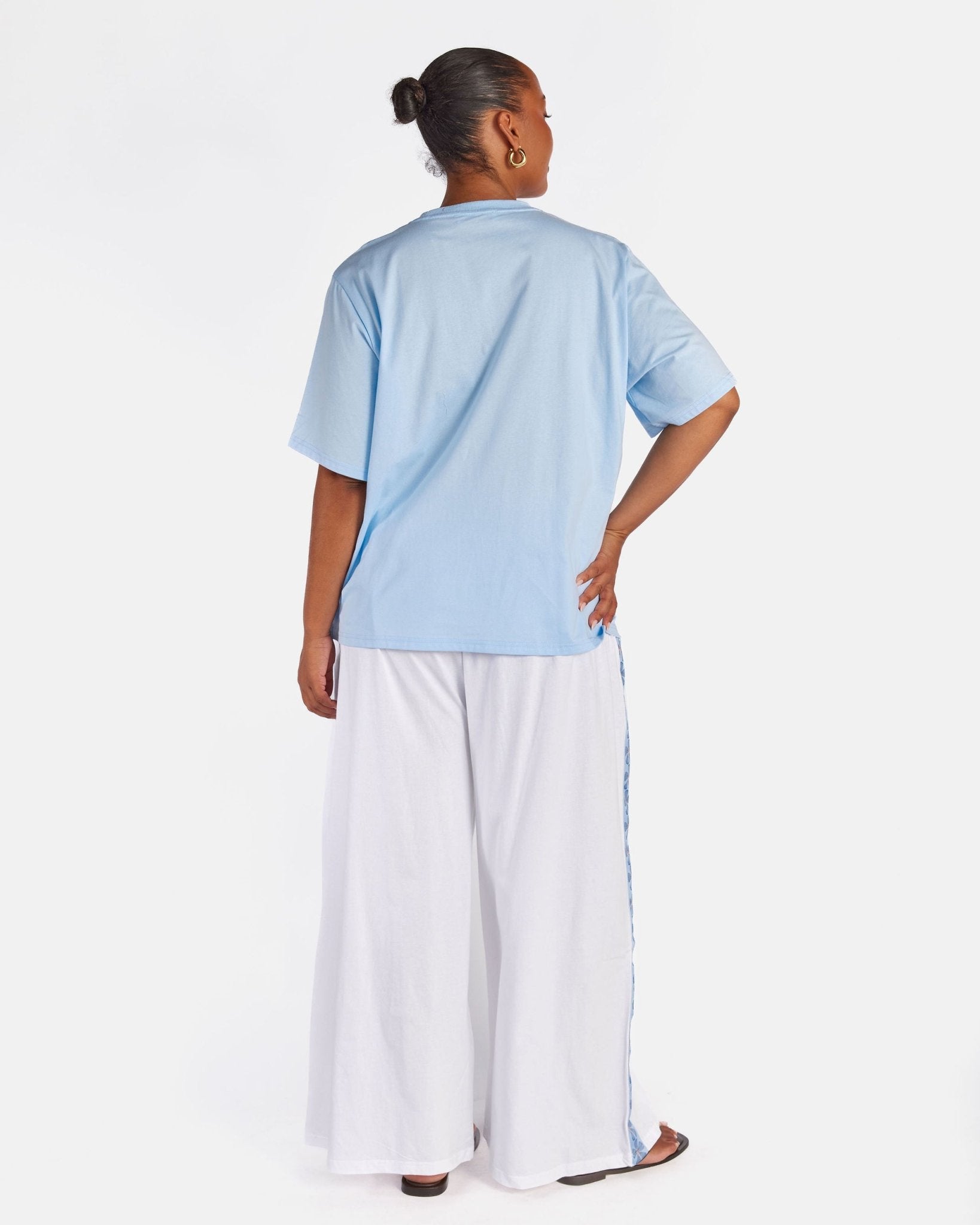 Made from a soft 100% cotton t shirt material, these pants are breathable, lightweight and gentle on the skin. They are unlined for an airy, easy wearing feel and feature a relaxed wide leg fit that sits comfortably on the body without clinging.