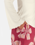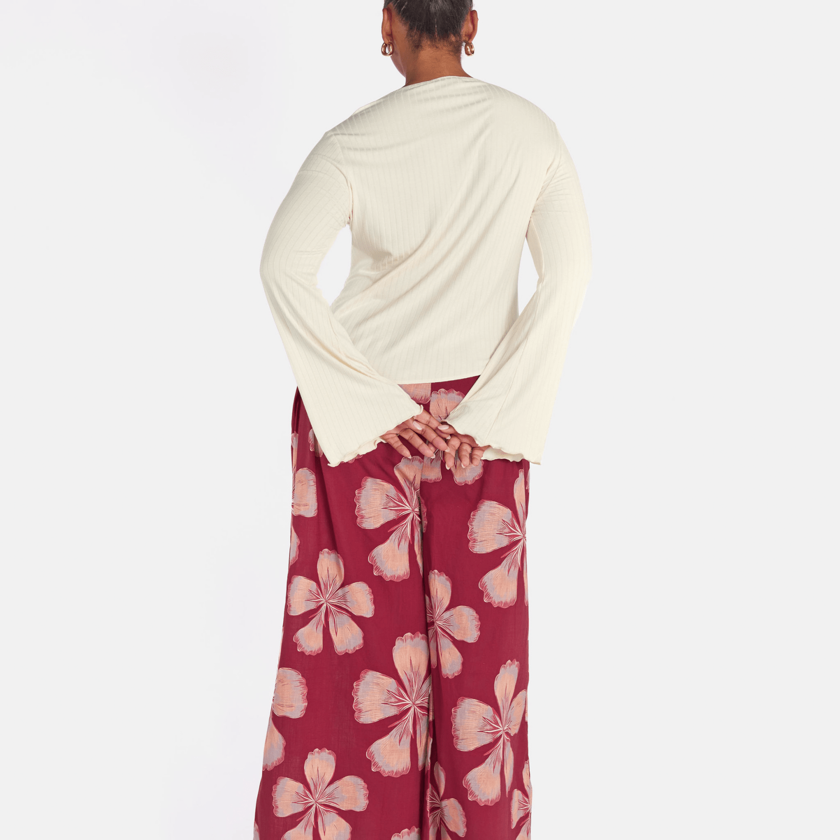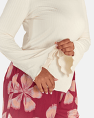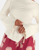 Finished with soft bell sleeves and a delicate lettuce hem, this top brings a feminine touch to an otherwise easy, everyday piece. The neutral beige colour makes it endlessly wearable with denim, skirts or comfy pants.