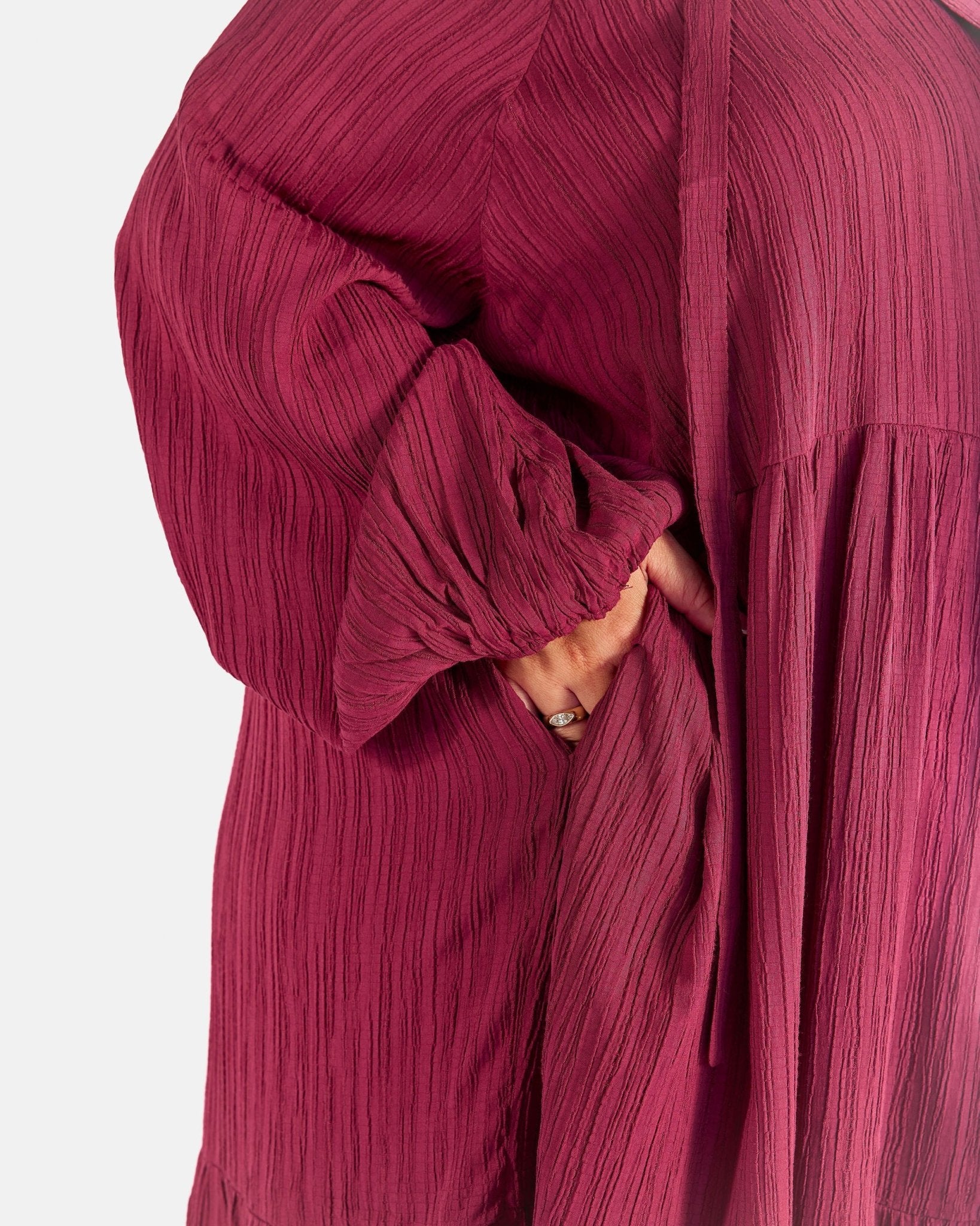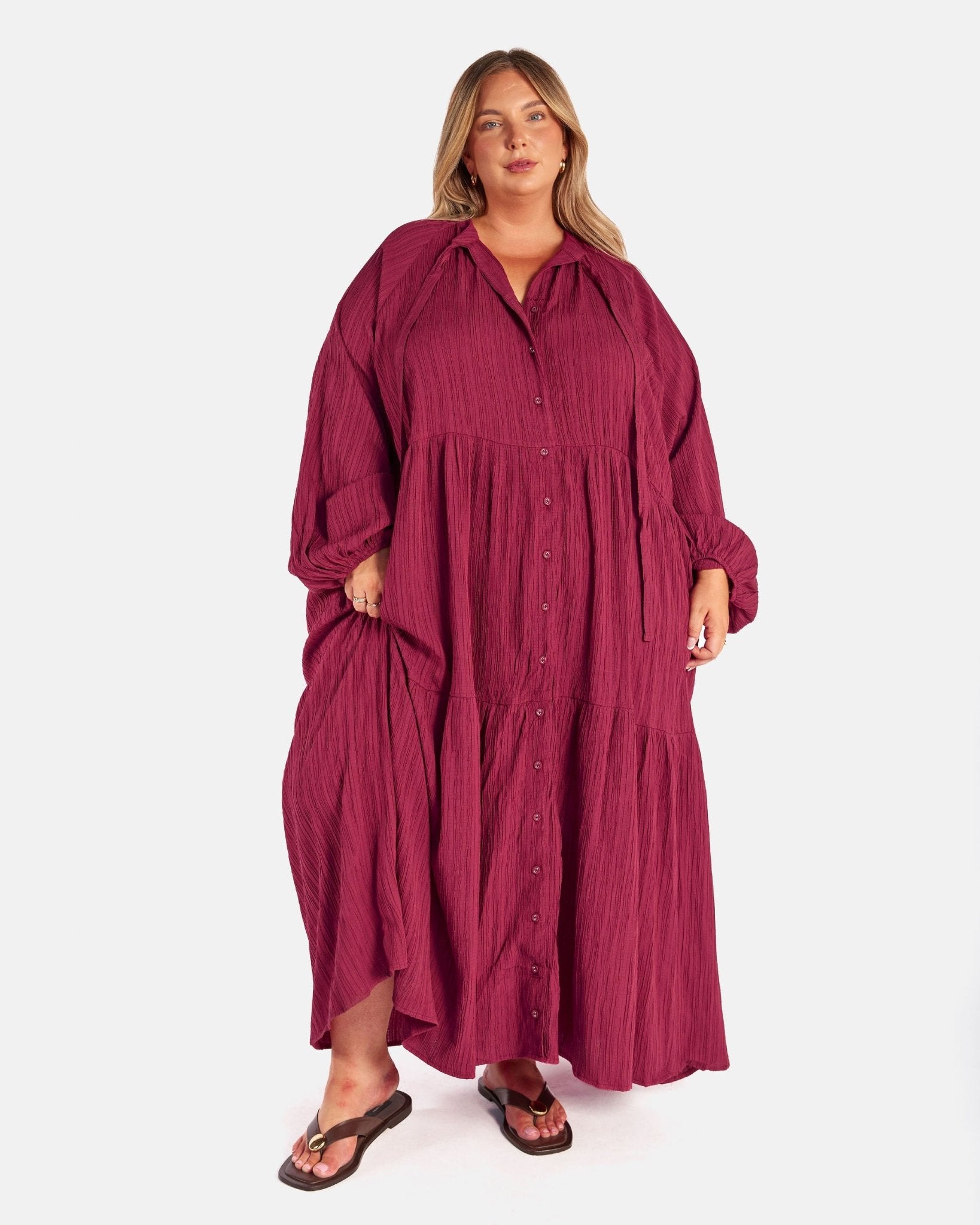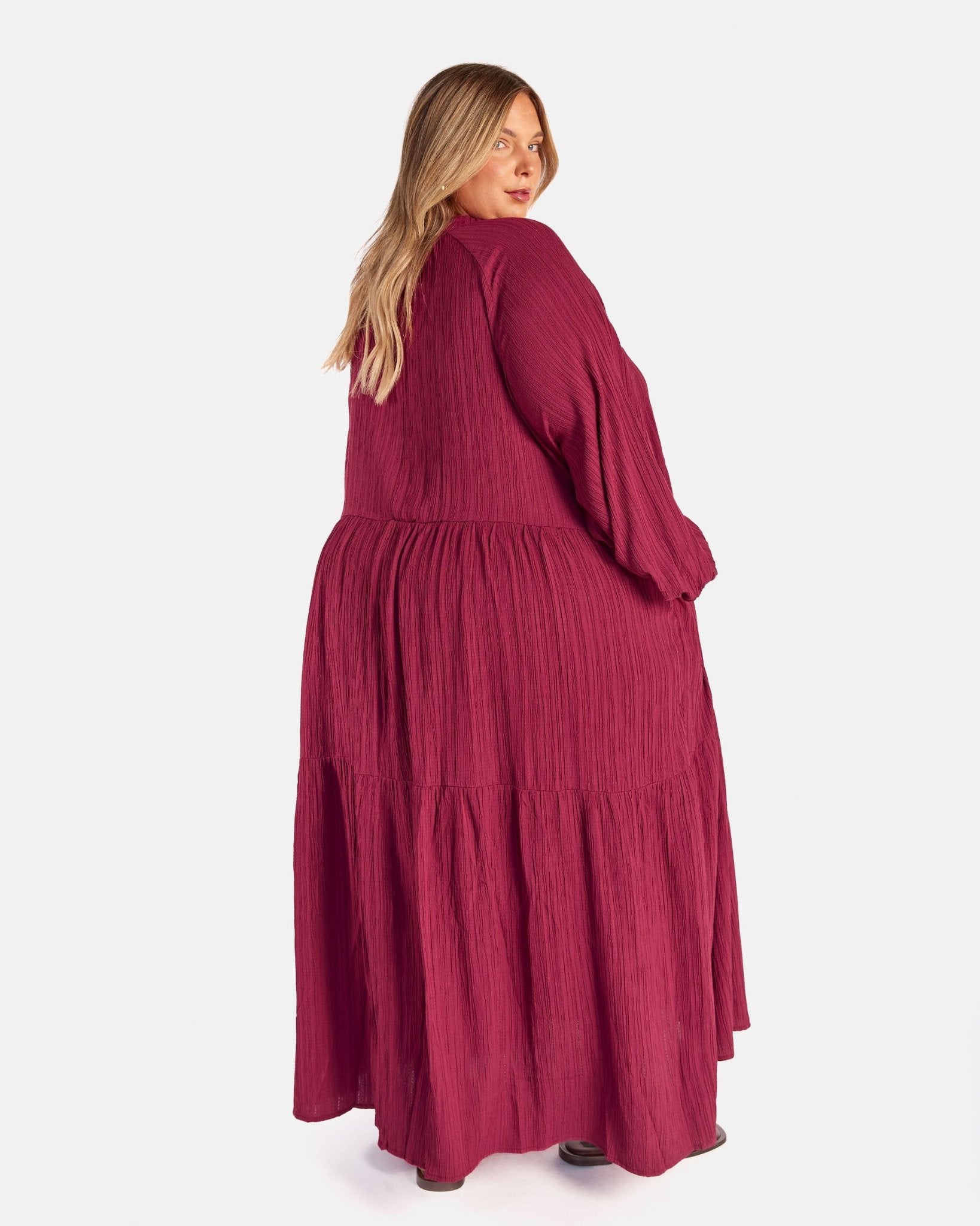 The Maxi Ruby Smock Dress in Wine Crepe is your throw-on-and-go statement piece that still feels soft and wearable. Crafted from a breathable 80% viscose, 20% cotton crepe blend, it has a lightweight texture that moves beautifully with the body.