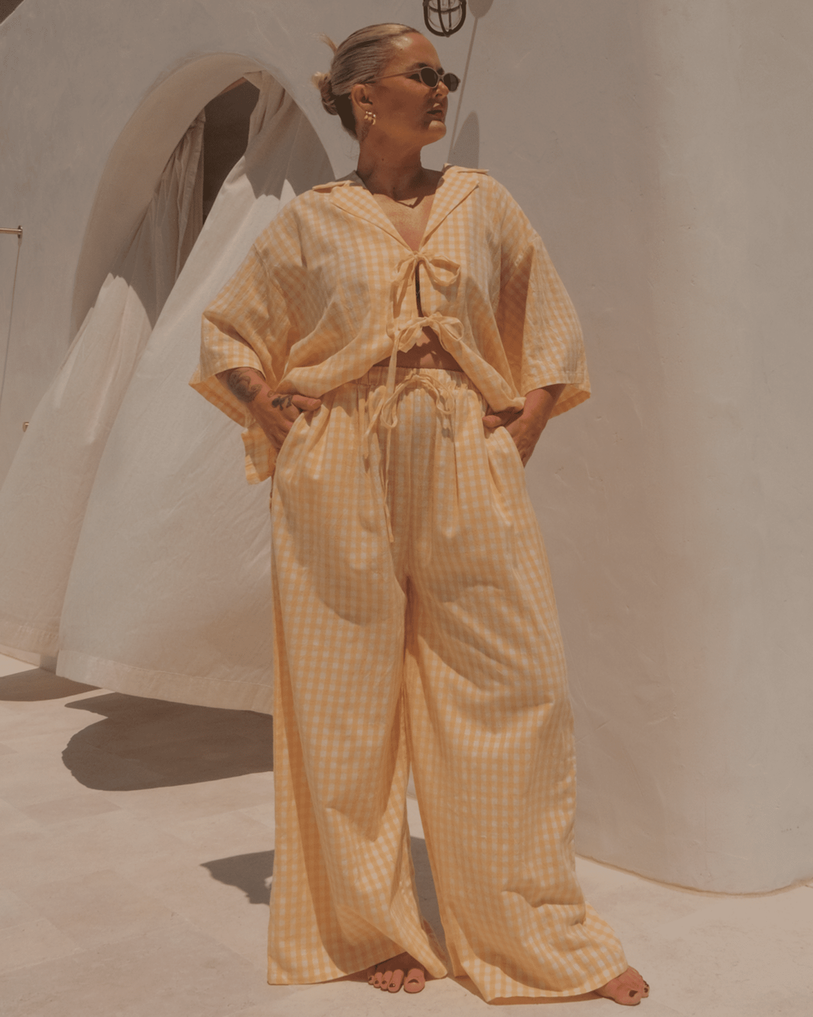 Comfort, but make it cute. Our Posey Pants are basically your new uniform for everything from couch hangs to cocktails. With their oversized, flowy fit and breezy fabric, these pants are ready to take you from bed to beach to “oh, this old thing?” brunch plans without breaking a sweat.
