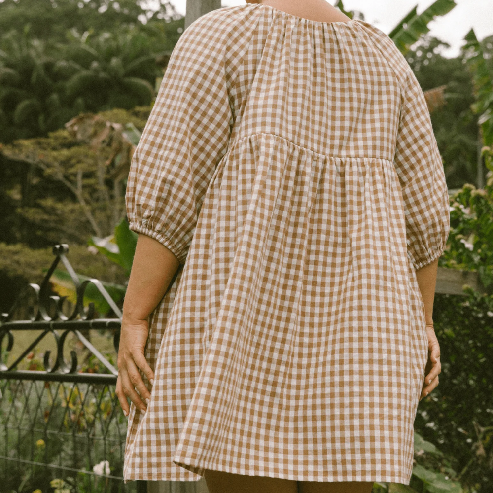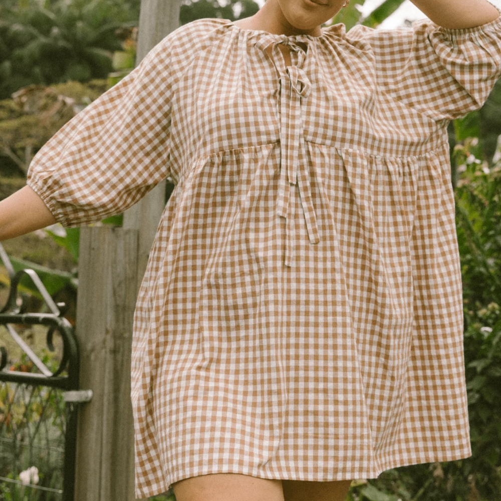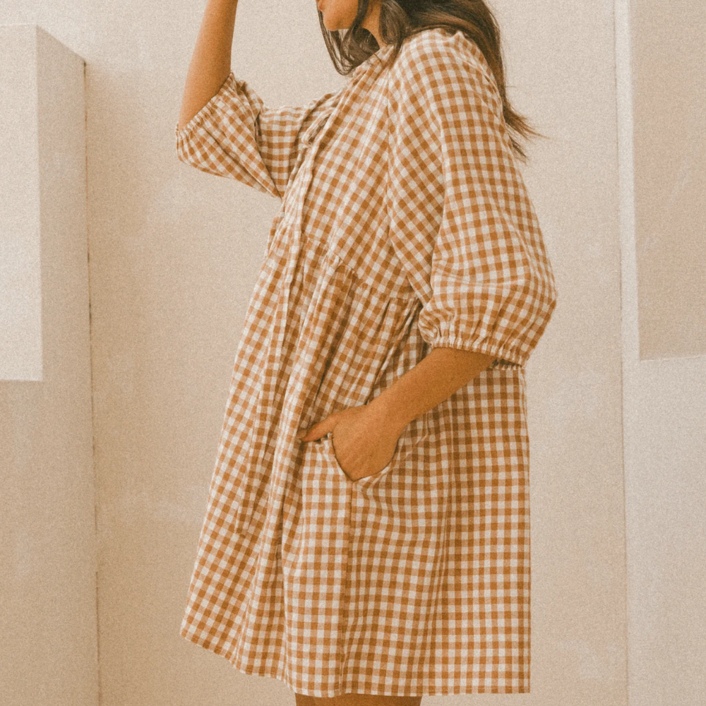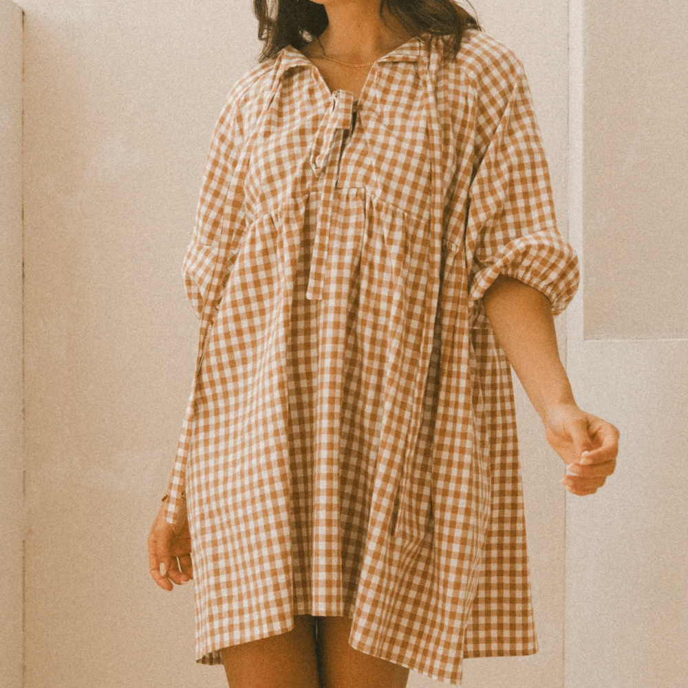 Meet your new go-to dress, designed for ultimate comfort and versatility! The Florence Mini Dress in Caramel Gingham features an oversized fit, giving you that effortless, relaxed vibe while still feeling polished.