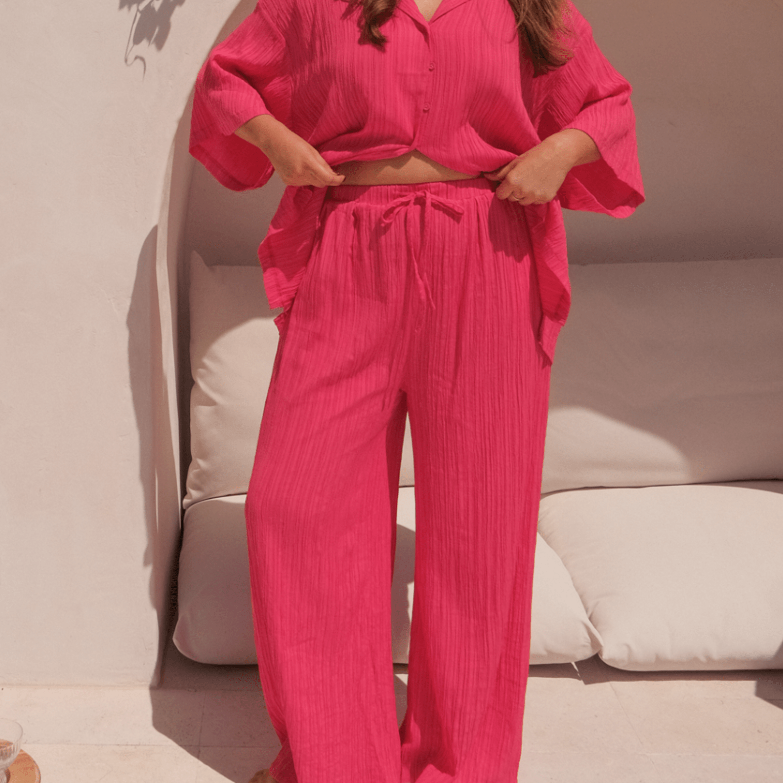 Comfort, but make it cute. Our Posey Pants are basically your new uniform for everything from couch hangs to cocktails. With their oversized, flowy fit and breezy fabric, these pants are ready to take you from bed to beach to “oh, this old thing?” brunch plans without breaking a sweat.