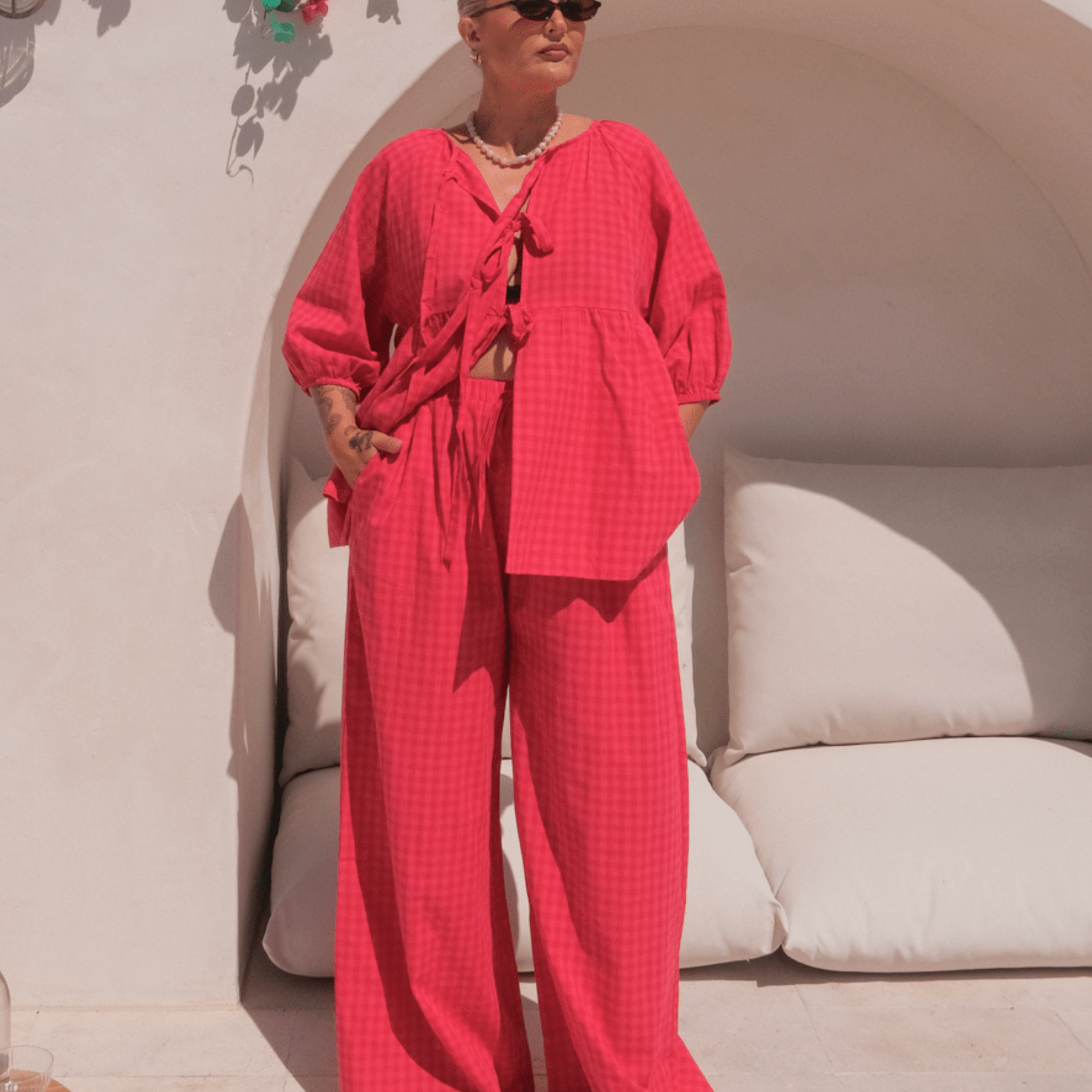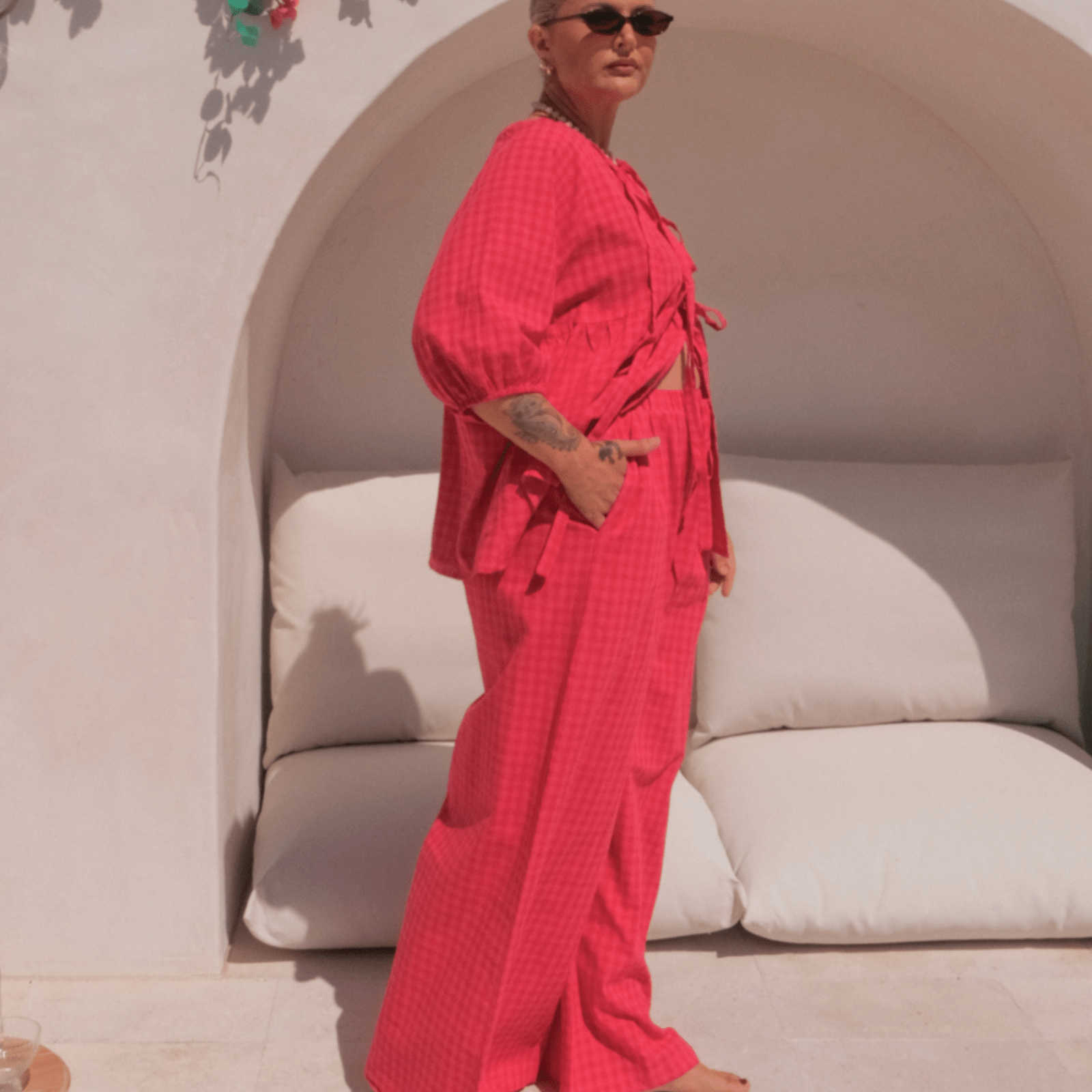 Comfort, but make it cute. Our Posey Pants are basically your new uniform for everything from couch hangs to cocktails. With their oversized, flowy fit and breezy fabric, these pants are ready to take you from bed to beach to “oh, this old thing?” brunch plans without breaking a sweat.