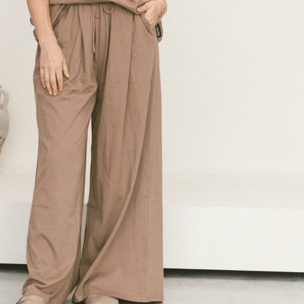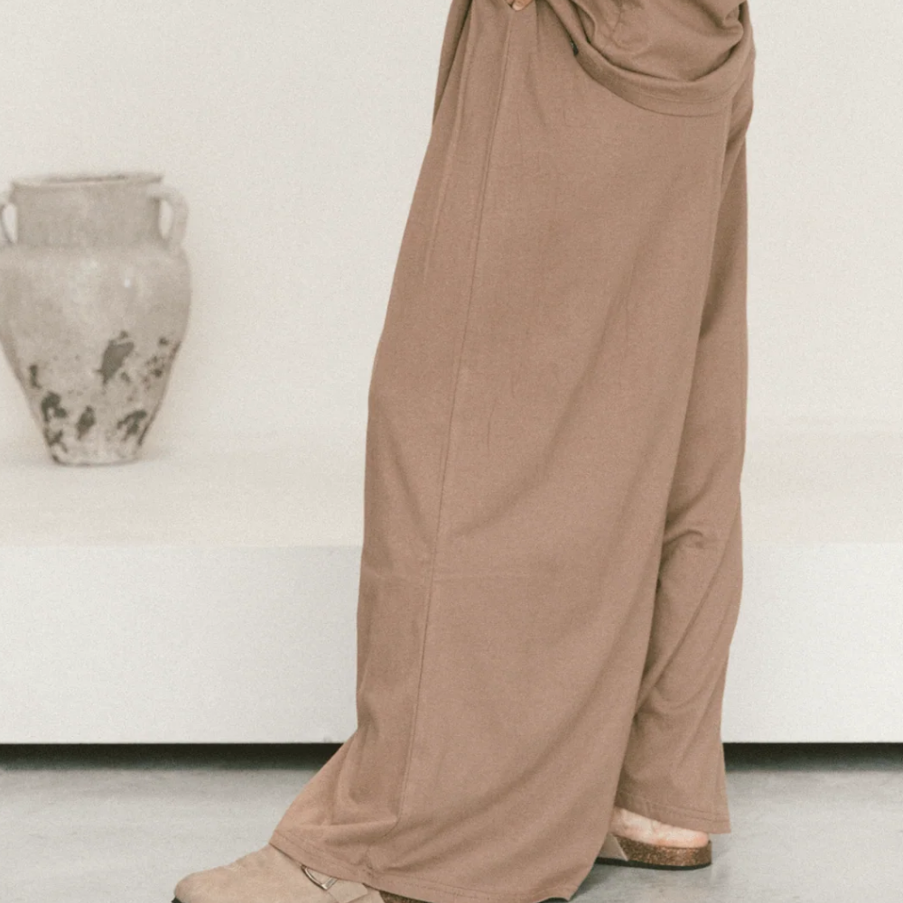 Buttery, light, breathable, and basically feel like wearing a cloud. The high elastic waistband keeps things comfy without squeezing, while the wide-leg fit gives total flowy freedom — perfect for chasing kids, chilling on the couch, or doing the “just one quick thing” kind of errands.