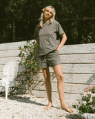These aren’t just any lounge shorts. Ridiculously soft & stretches in all the right places and stays breathable when life gets a little sweaty. The high-rise elastic waist is there to love you through every snack break, toddler wrangle and “I forgot we had swimming today” moment.