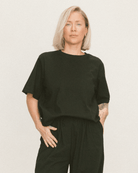 The “I woke up like this” of tees. With a slouchy shoulder, boxy fit, and soft Tencel blend, this is the kind of throw-on-and-go magic you’ll want in every colour. It’s that good.