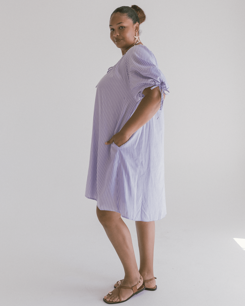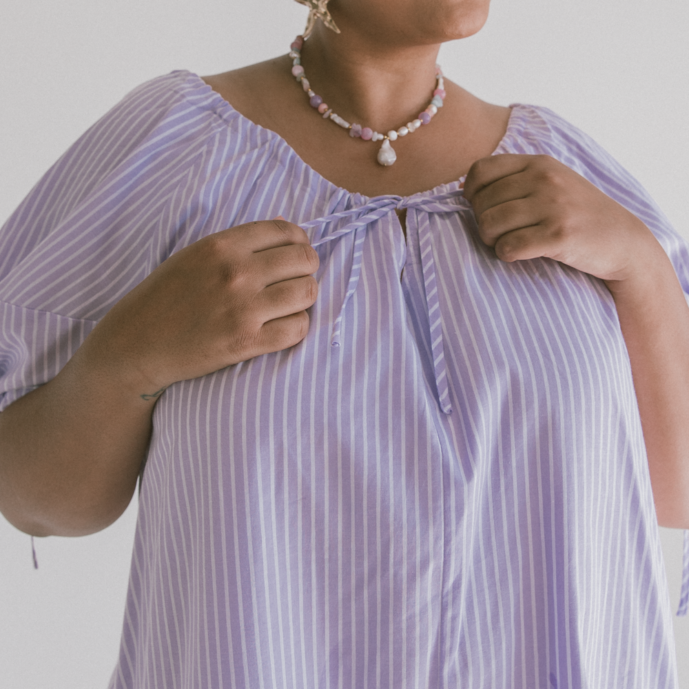 The adjustable drawstring neckline lets you style her your way (pulled in for a sweet, gathered look or worn looser for laid-back vibes), while the 100% cotton fabric and full lining keep things breathable, soft, and worry-free. Oh, and she’s got side seam pockets — because we’d never let you live without them.