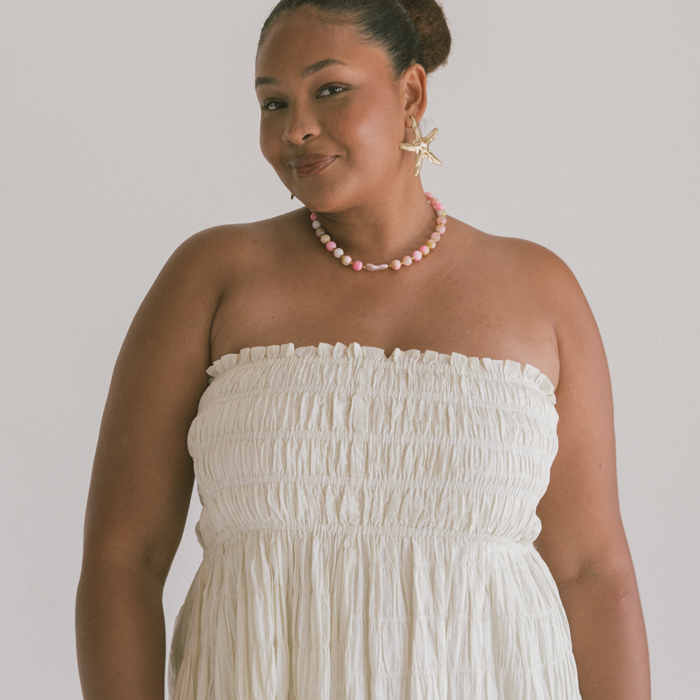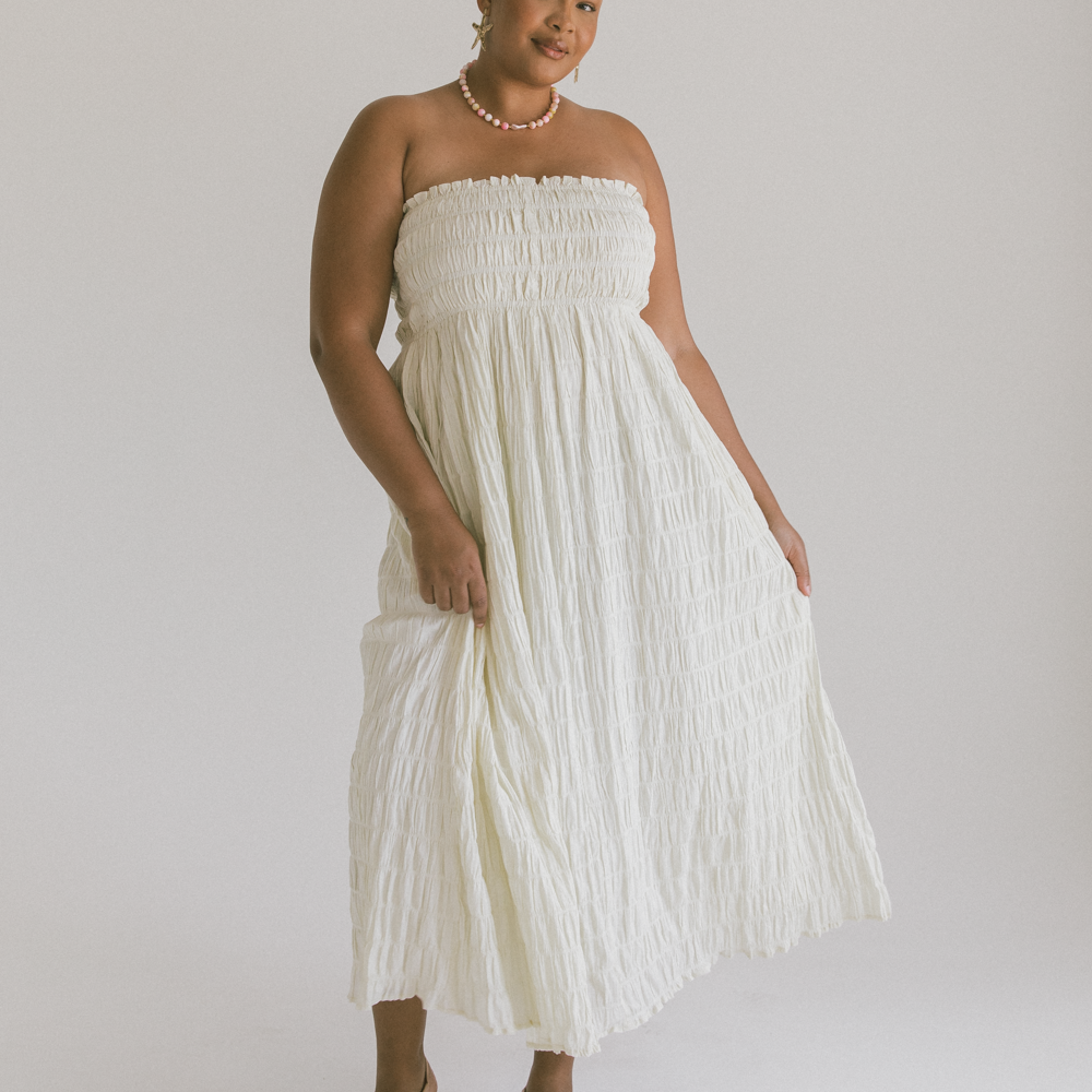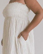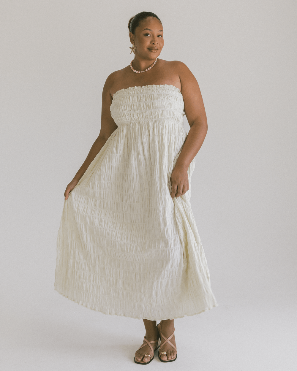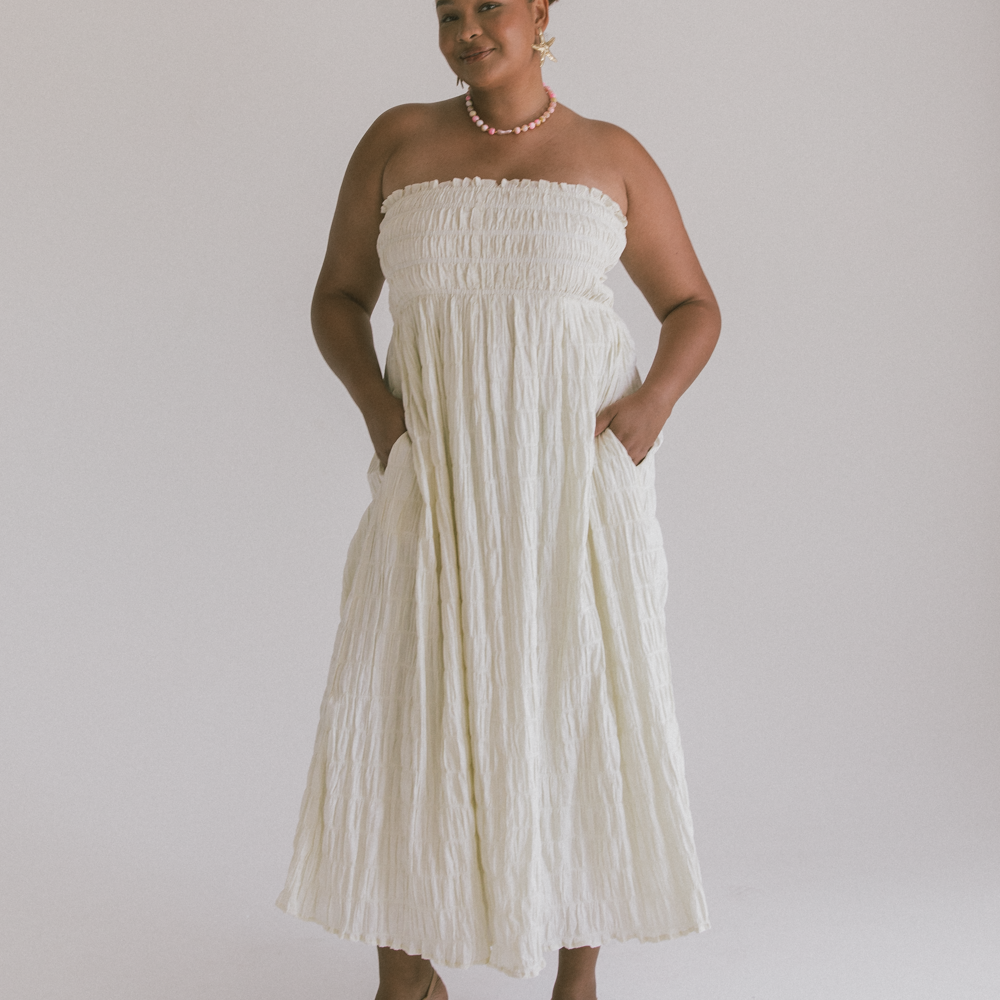 From long lunches to sunset strolls, the Mabel Maxi Dress was made for days when you want easy elegance without even trying. With her strapless neckline and shirred bust, she’s equal parts flattering and fuss free — the kind of piece you throw on and instantly feel put together, oh and did we mention side seam pockets? She's practical, comfy & a beauty.