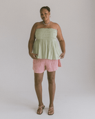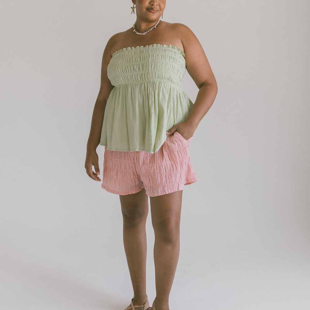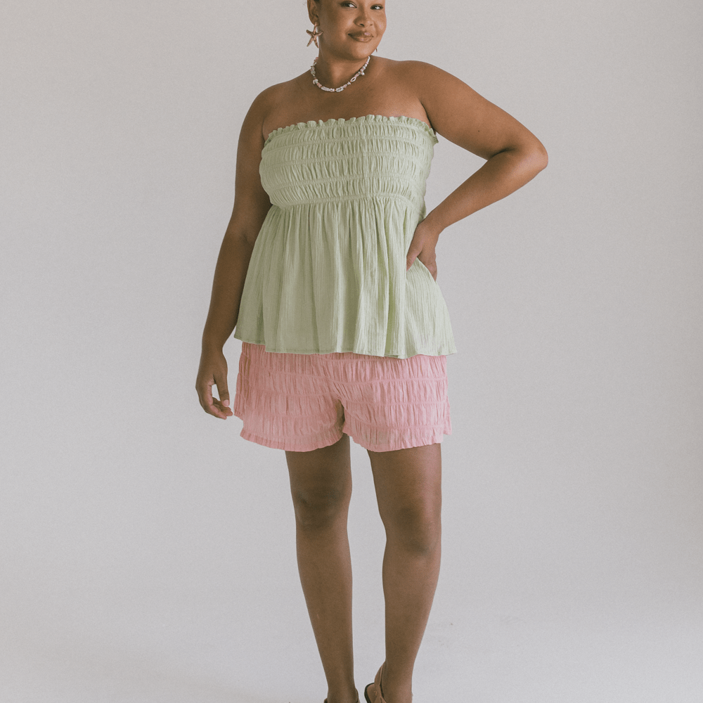 Meet the Mabel Top — your new effortless go-to for those “cute but comfy” days. With her strapless neckline and shirred bust, she’s got that easy, throw-on charm that feels just as good as it looks. Whether you’re dressing her up for brunch or keeping it chill at home, Mabel moves with you and always looks the part.