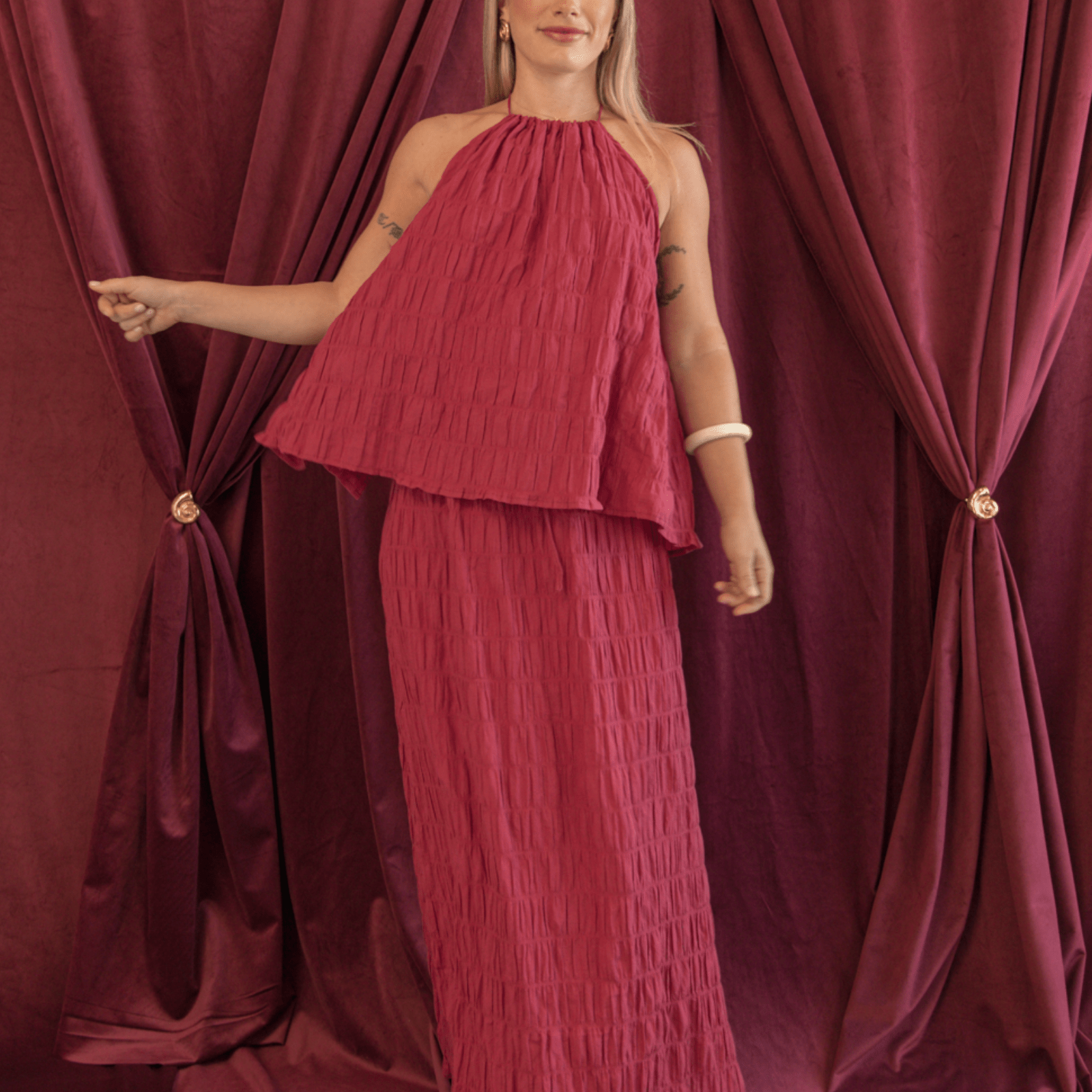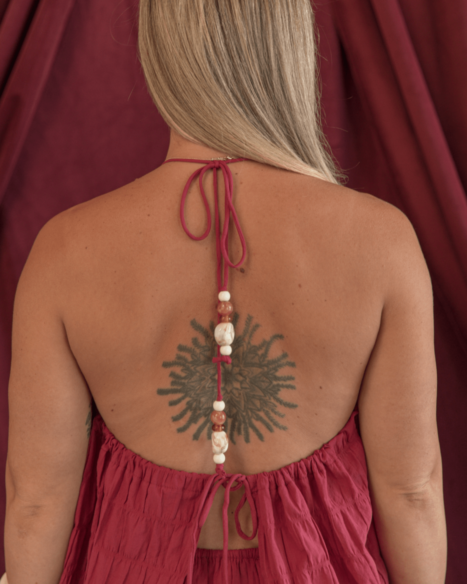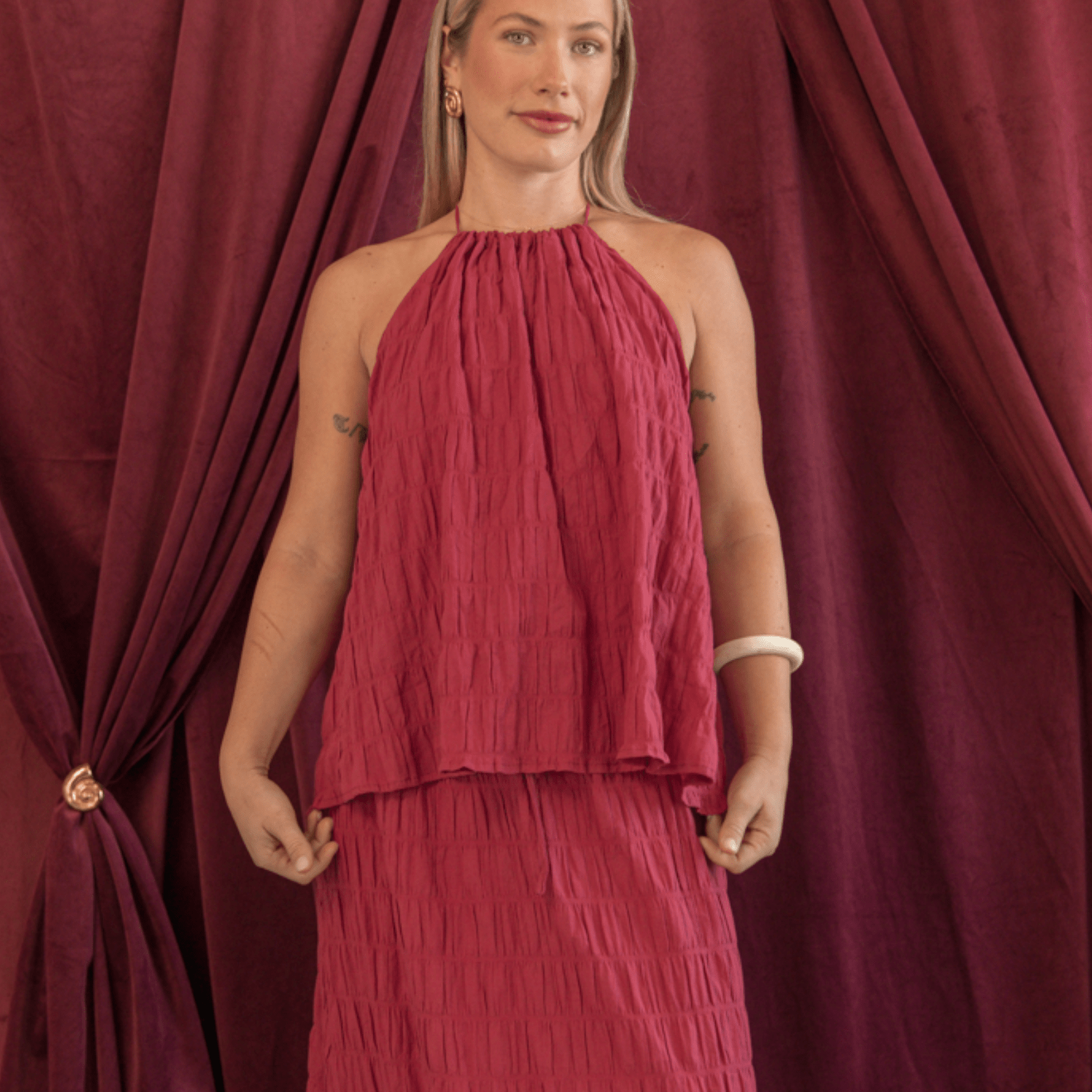 The halter neckline gathers softly for a floaty shape, while the adjustable back and neck ties let you customise the fit your way. We finished her with our signature bead detailing, adding a little bit of personality and charm to an already feel good style. Wear her loose, tuck her in or pair her with the matching skirt for a moment that feels like maximum impact with minimum effort.