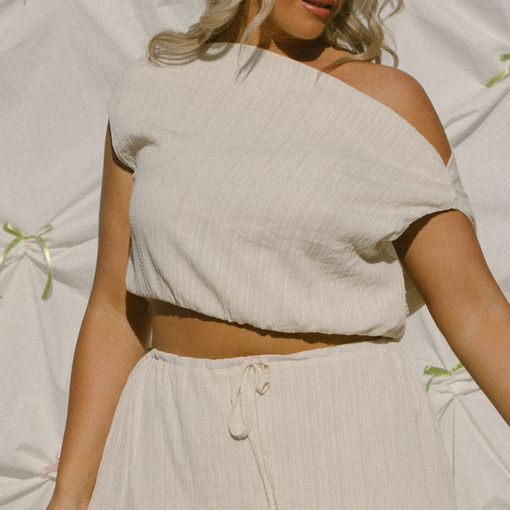 The Macey Top | Cream Crepe is the perfect blend of style and function, designed to adapt to your needs while making a bold statement. Crafted from lightweight, breathable top features a reversible design, allowing you to wear it multiple ways for different looks. Whether you prefer a classic boat neckline or a sultry off-the-shoulder style, the Macey Top offers effortless versatility.