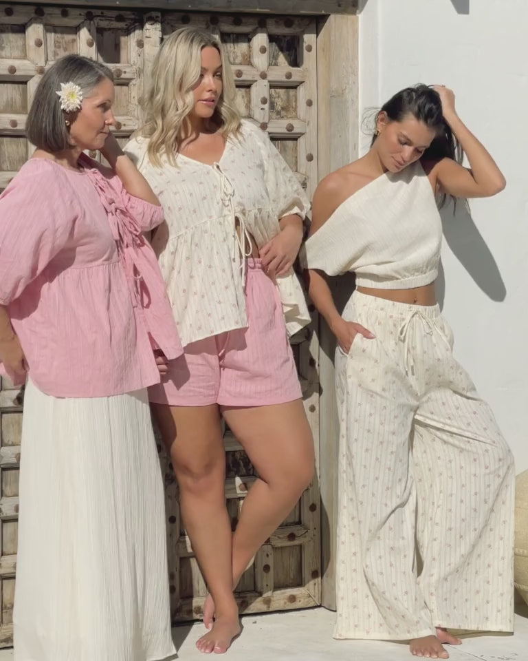 Our Crepe styles are crafted from a beautiful, breathable blend designed for comfort and elegance. Due to the nature of the loose weave, this fabric is more delicate than our cotton and linen pieces and requires extra care to maintain its quality and longevity.