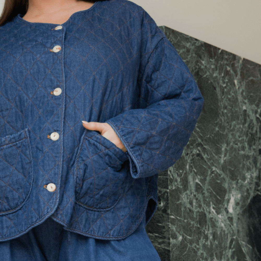 Say hello to your new throw-on-and-go favourite — our Quilted Jacket in Dark Denim. Made from 100% breathable cotton and finished in a timeless indigo wash, this oversized layer is the ultimate mix of comfort, warmth and easygoing style.
