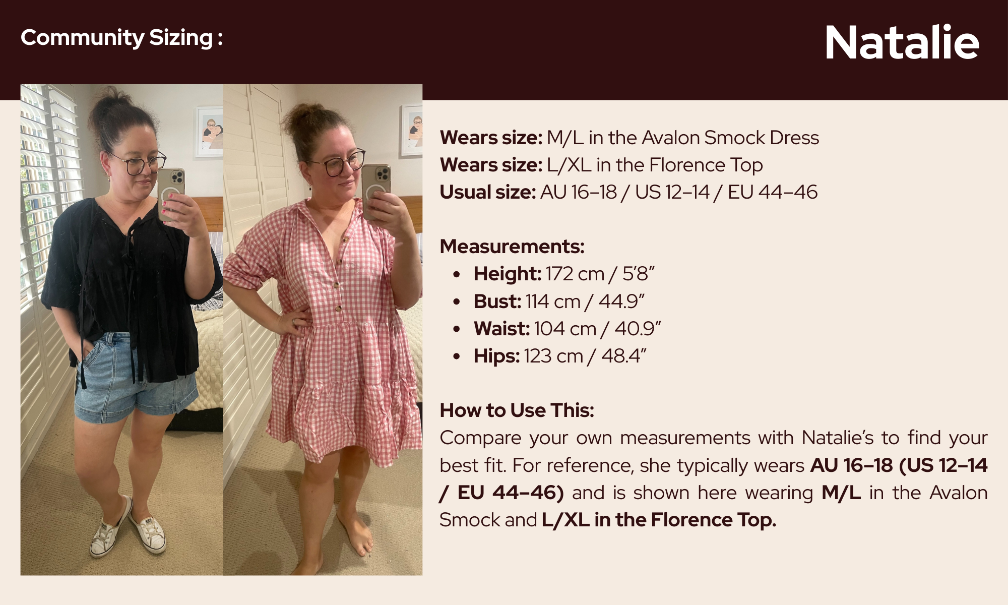 Some TLC favourites Florence Tops/Dresses, & Avalon Smock Silhouettes, are intentionally oversized.