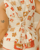 Elevate your wardrobe with the stunning Ella Vest in our exclusive Sweetheart print! This versatile vest features a chic button-down front and a unique drawstring back detail, allowing you to customise the fit to suit your style.