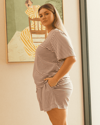 These aren’t just any lounge shorts. Ridiculously soft & stretches in all the right places and stays breathable when life gets a little sweaty. The high-rise elastic waist is there to love you through every snack break, toddler wrangle and “I forgot we had swimming today” moment.