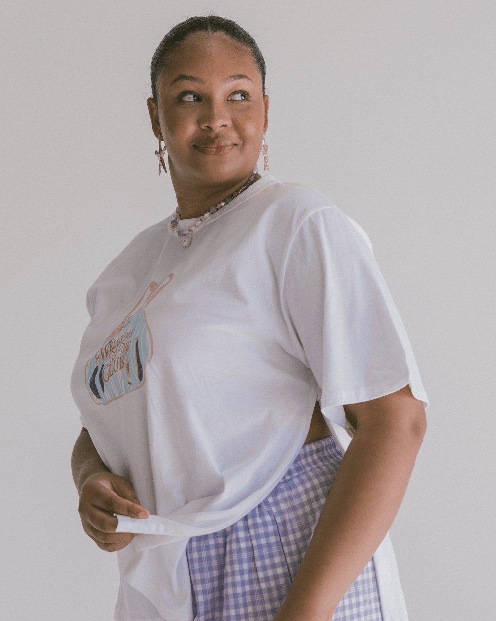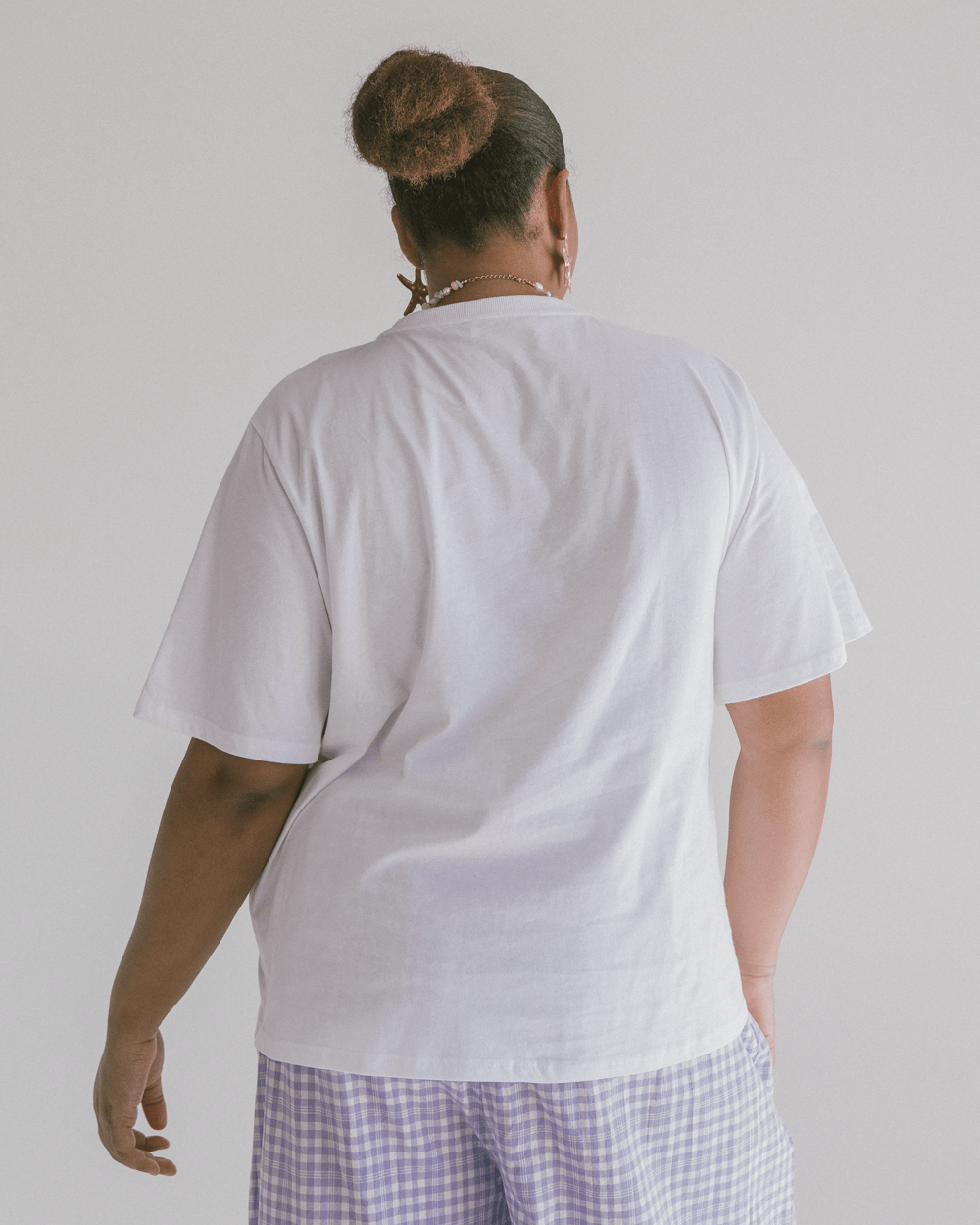 The “I woke up like this” of tees. With a slouchy shoulder, boxy fit, and buttery 100% cotton, this is the kind of throw-on-and-go magic you’ll want in every colour. It’s that good.