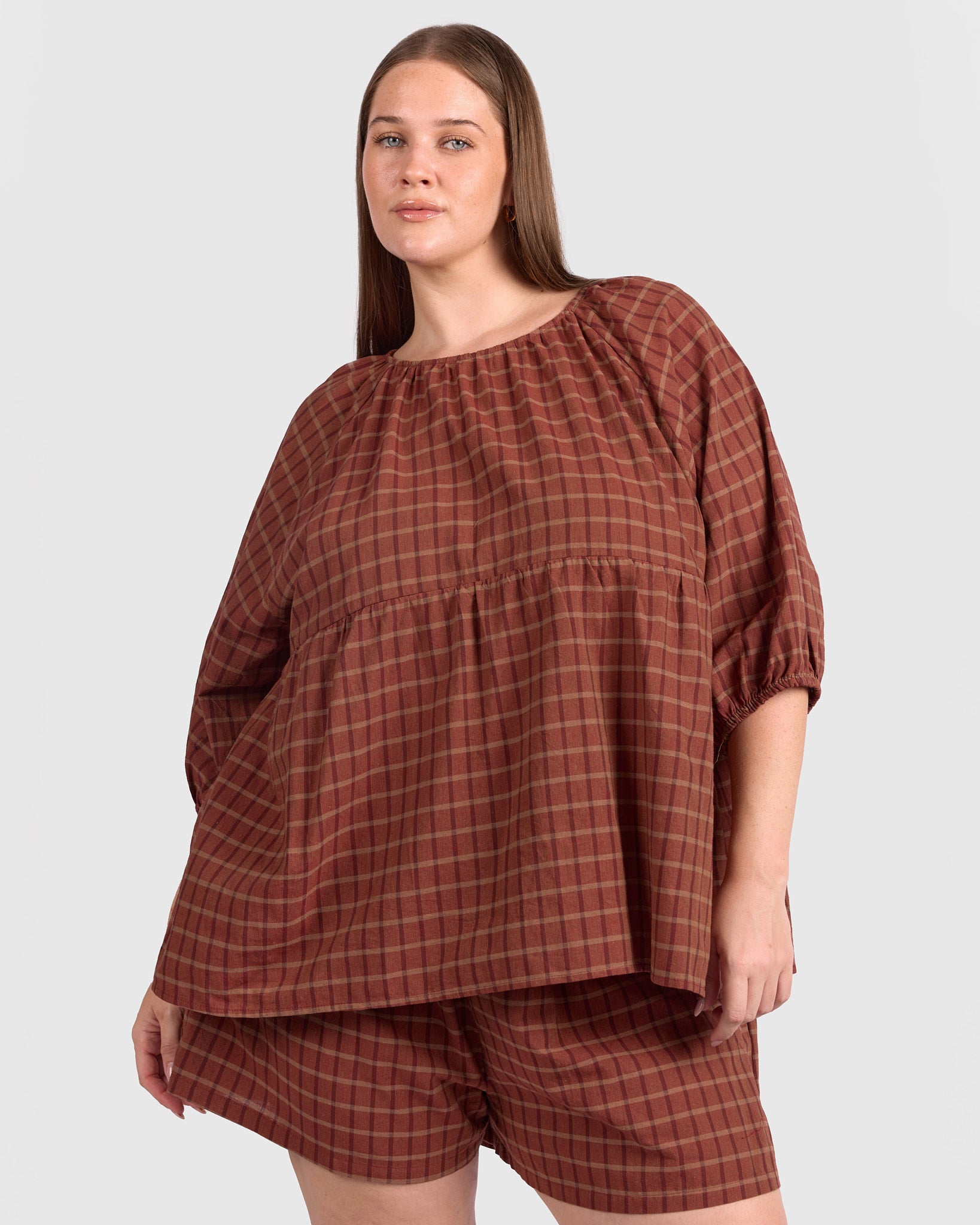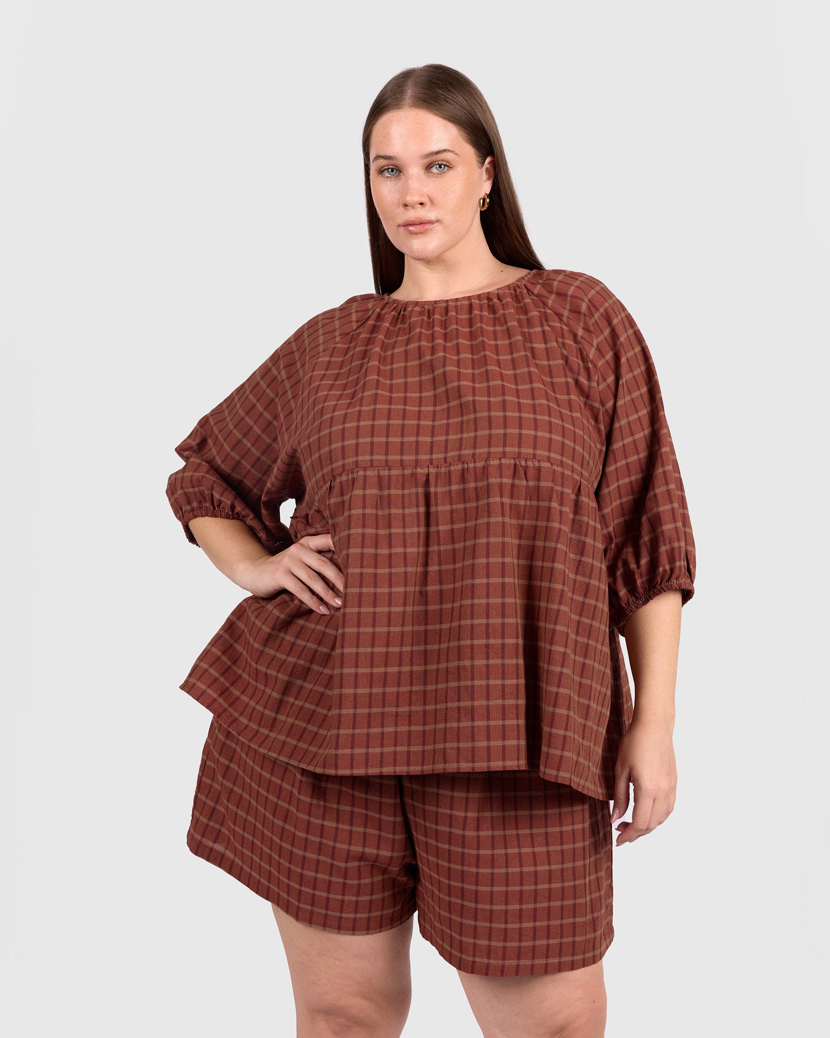 The Florence Top in Maple Gingham is a timeless favourite with thoughtful detail woven in. Crafted from 100% breathable cotton, it feels lightweight, soft, and easy to wear from the very first try on.