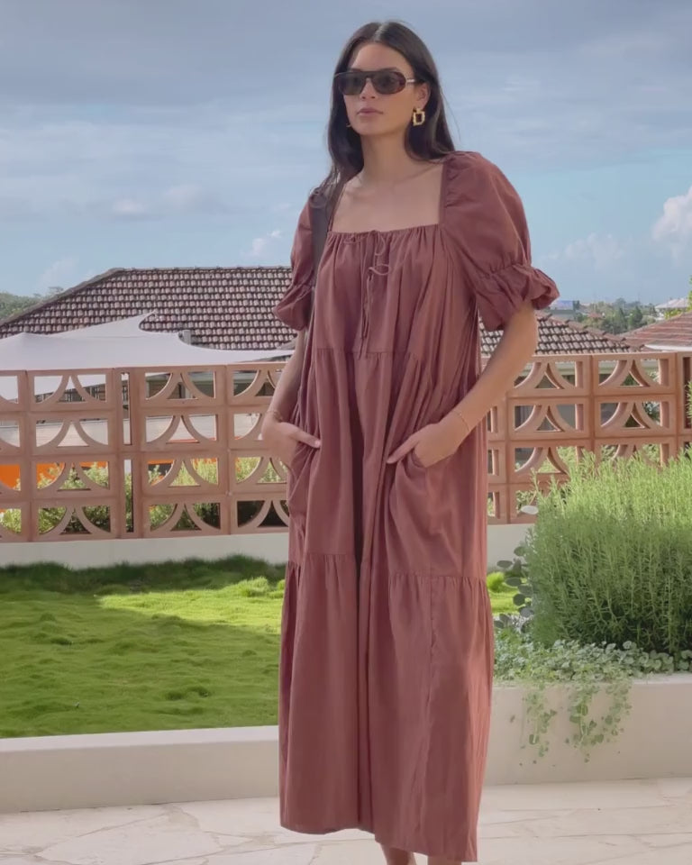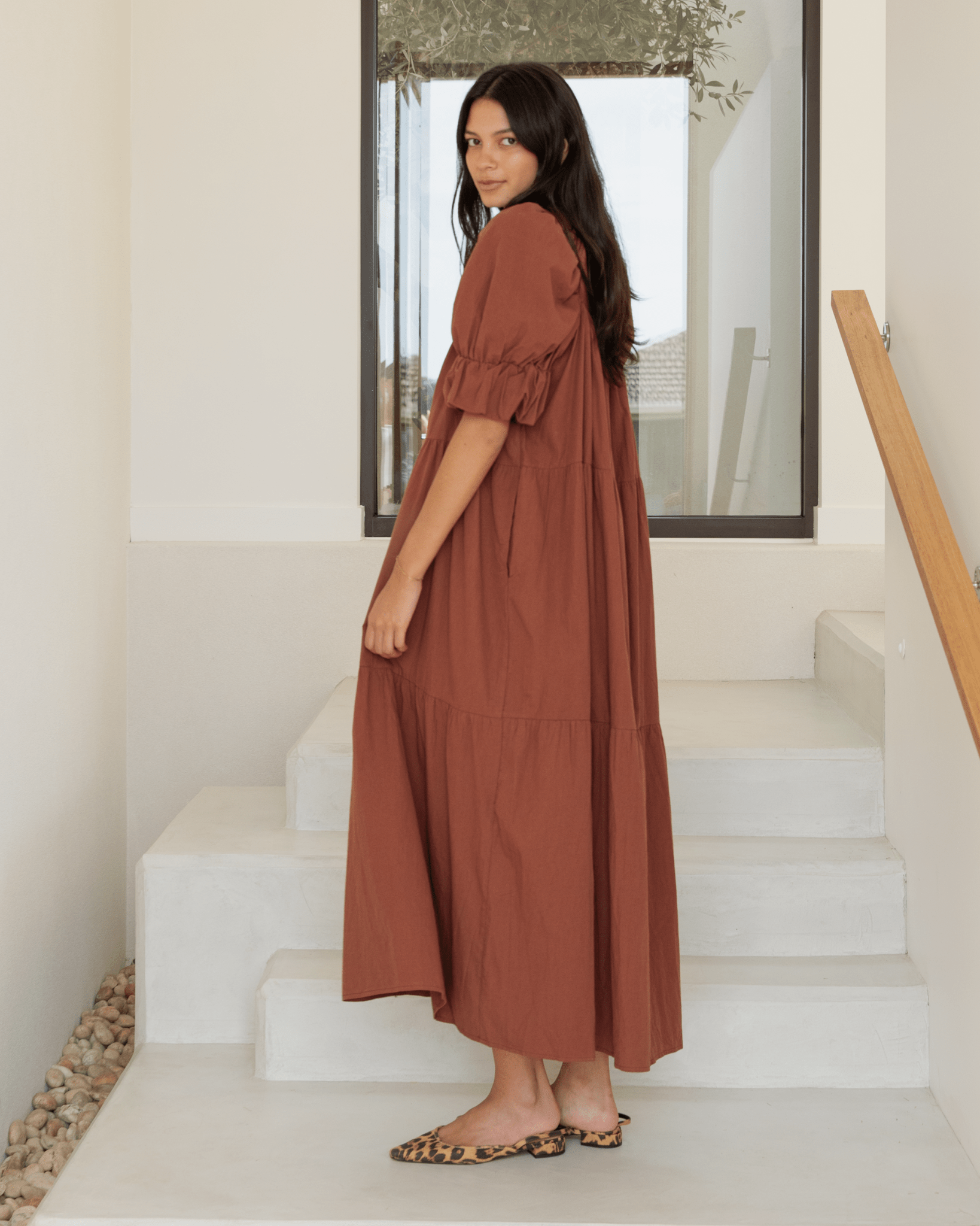 Float through autumn in the Goldie Maxi Dress – with bubble sleeves, a flowy bodice, and delicate front ties, it’s the ultimate blend of comfort and elegance. Perfect for markets, soirées, and everything in between, no effort required.