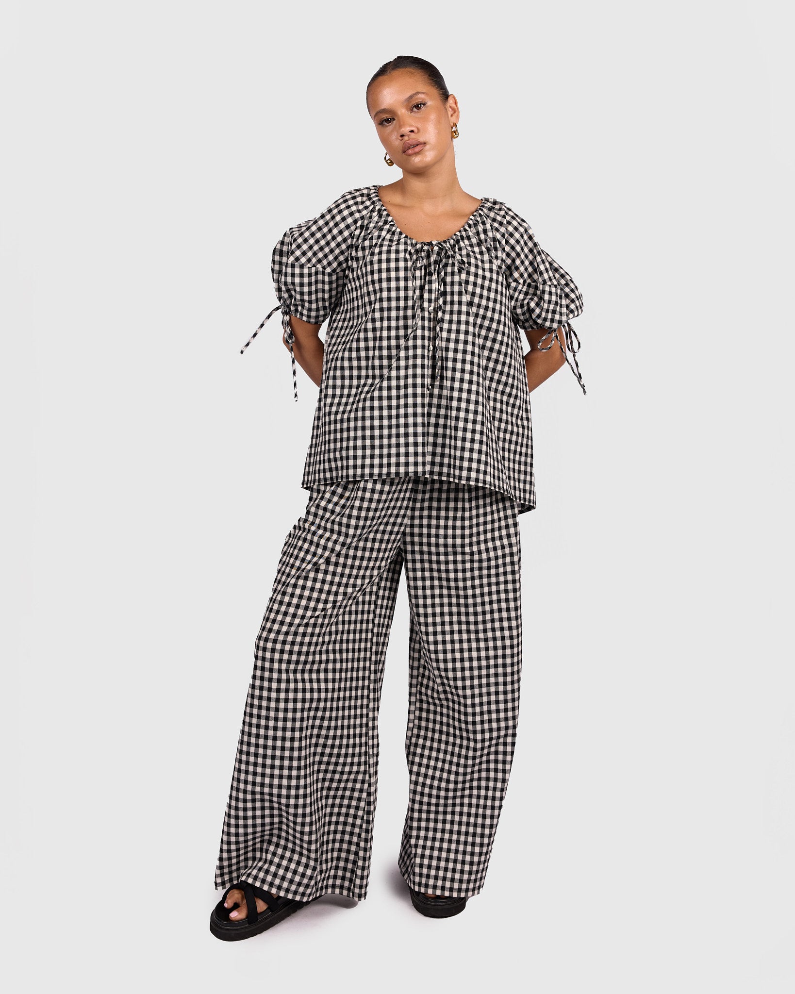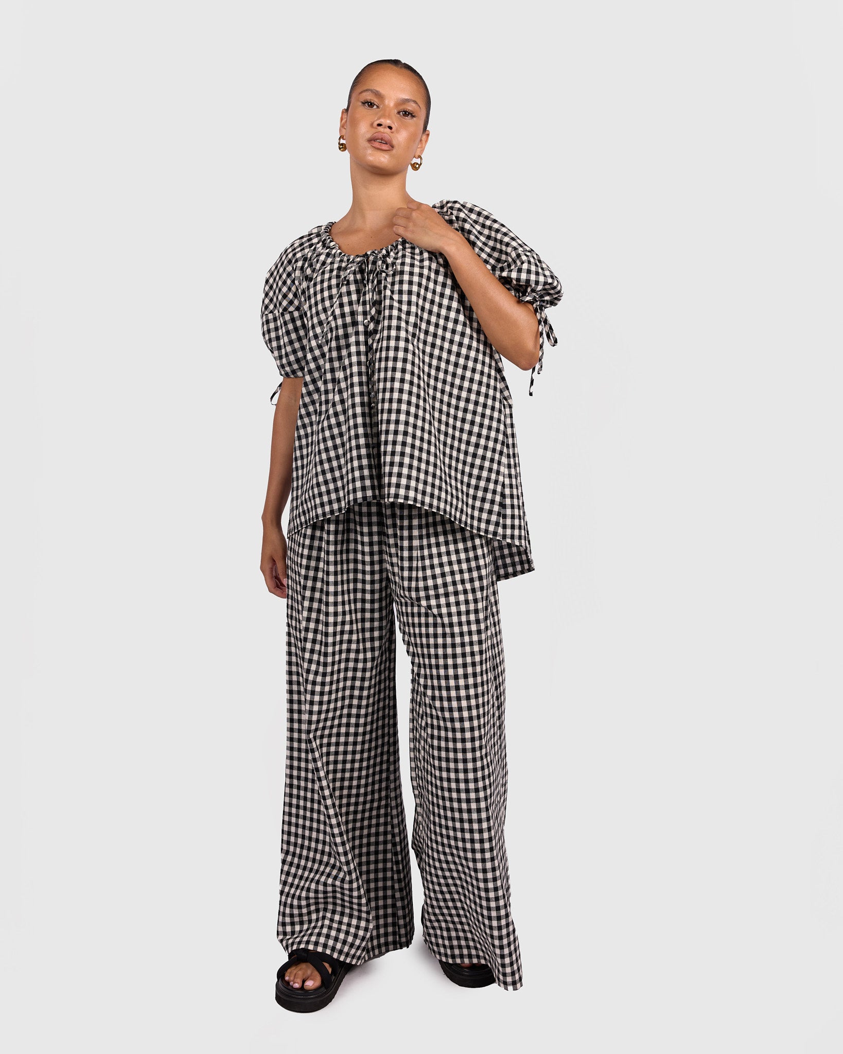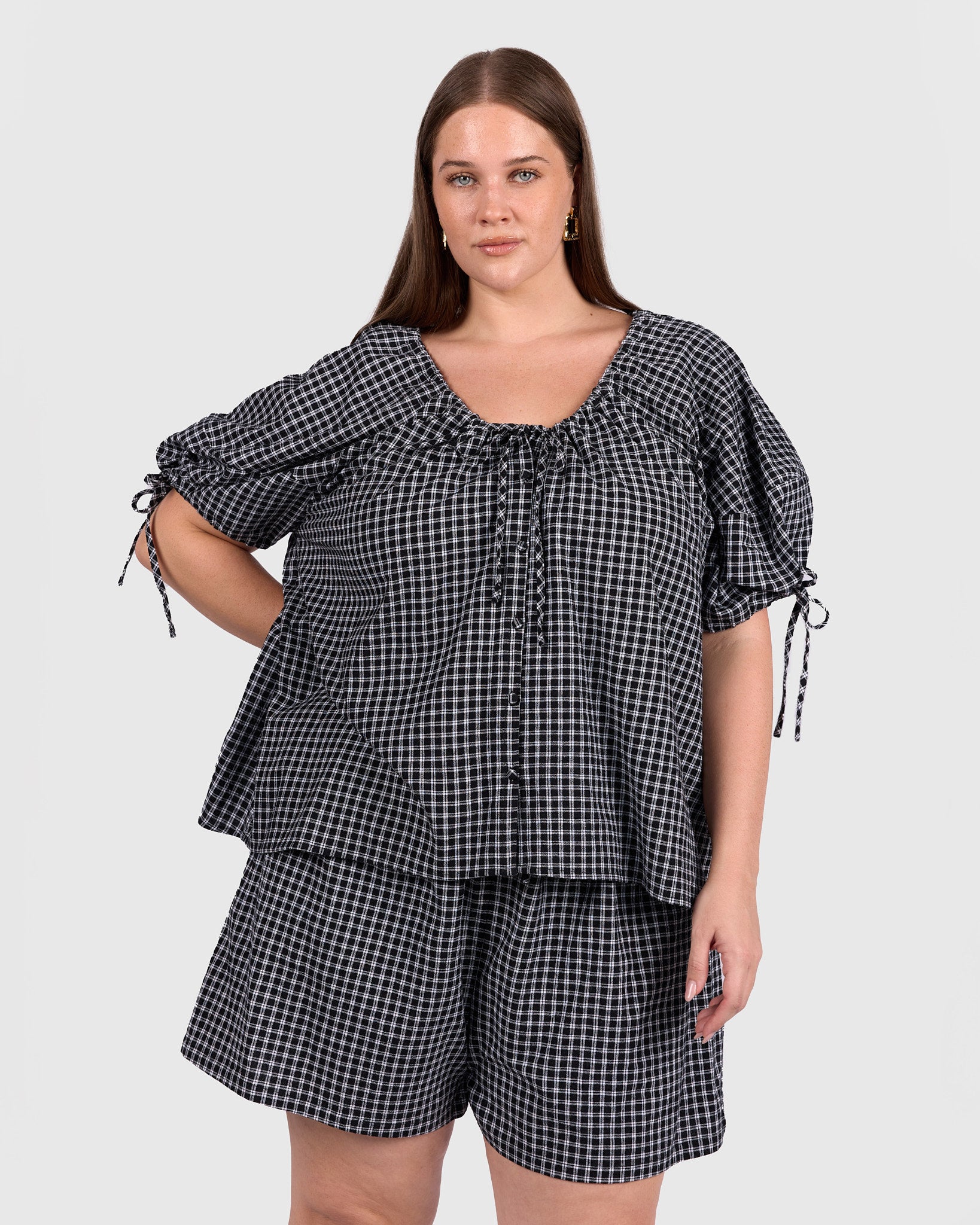 The Harvey Top in Black Gingham is the perfect mix of relaxed comfort and thoughtful detail. Crafted from 100% breathable cotton, it feels lightweight, soft, and easy to wear all day long.