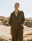 Meet your new forever favourite: the Lacey Lounge Shirt. You know the girl in high school that was cool without trying to be? This is her. Oversized, drapey in all the right places, and easy to throw on – it’s giving main character with minimal effort.