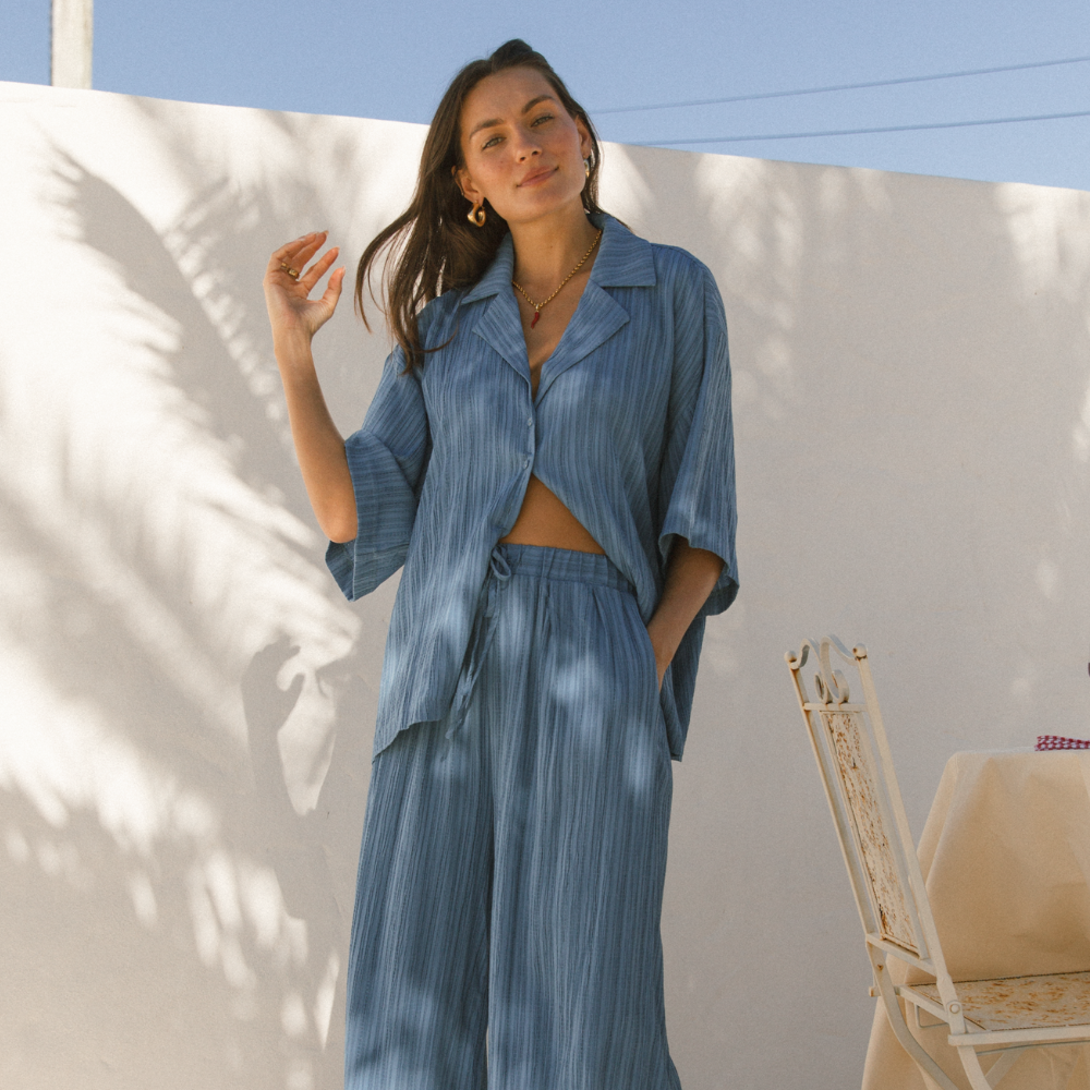 Our Crepe styles are crafted from a beautiful, breathable blend designed for comfort and elegance. Due to the nature of the loose weave, this fabric is more delicate than our cotton and linen pieces and requires extra care to maintain its quality and longevity.