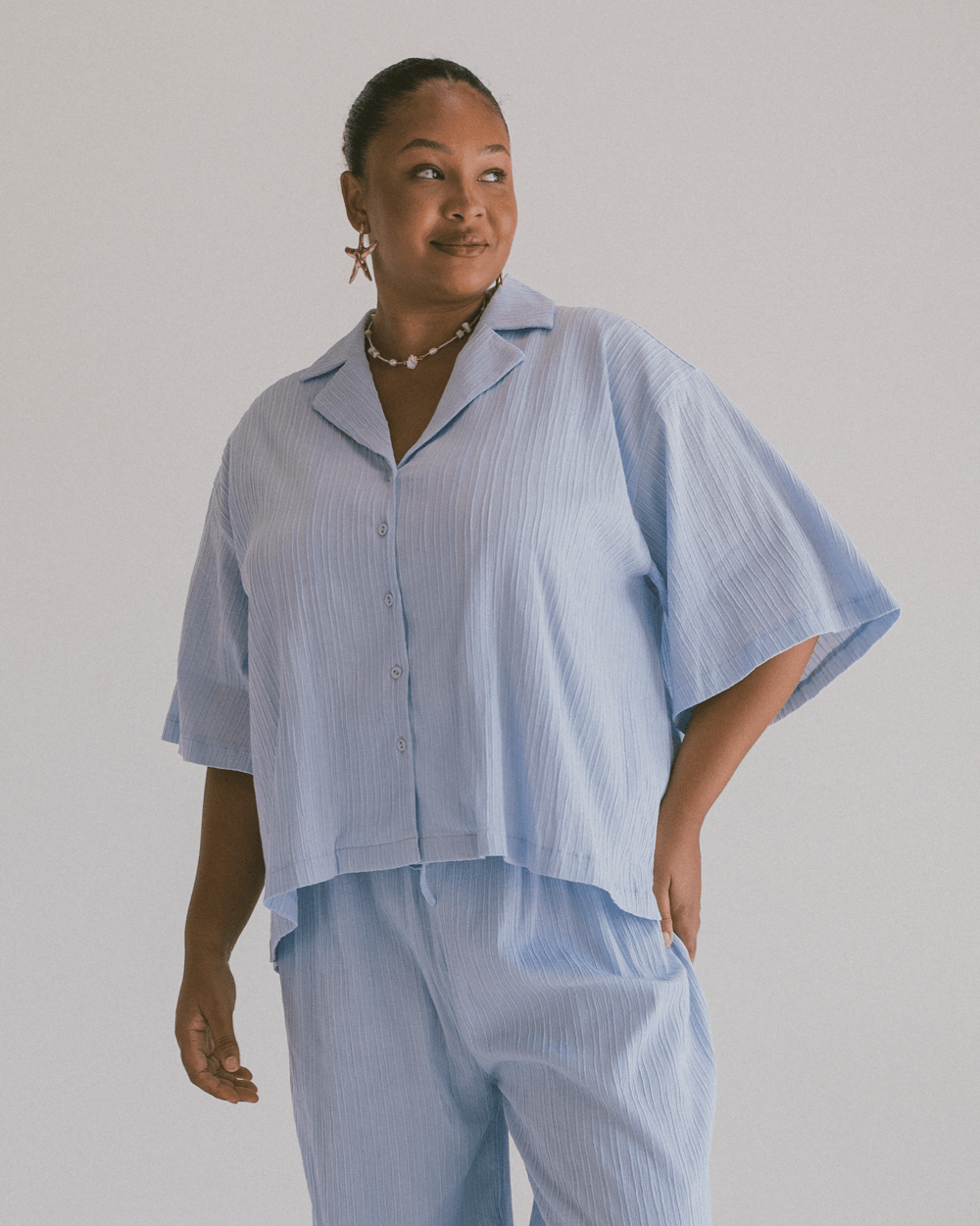 Meet your new forever favourite: the Lacey Lounge Shirt. You know the girl in high school that was cool without trying to be? This is her. Oversized, drapey in all the right places, and easy to throw on – it’s giving main character with minimal effort.
