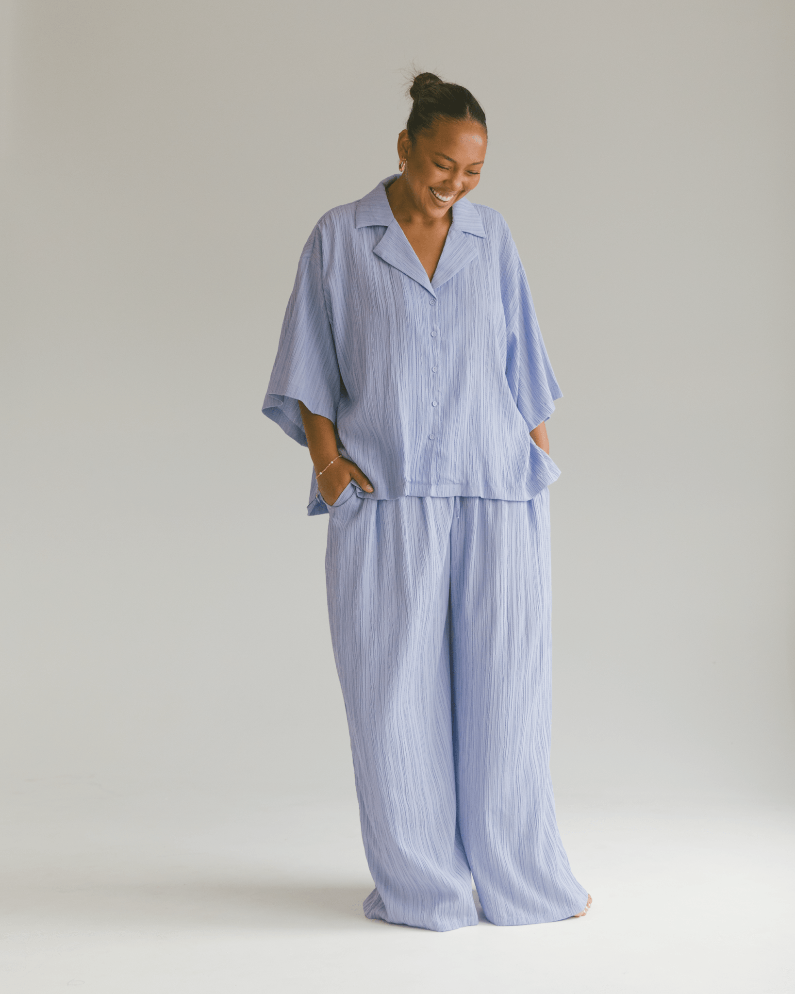 Meet your new forever favourite: the Lacey Lounge Shirt. You know the girl in high school that was cool without trying to be? This is her. Oversized, drapey in all the right places, and easy to throw on – it’s giving main character with minimal effort.