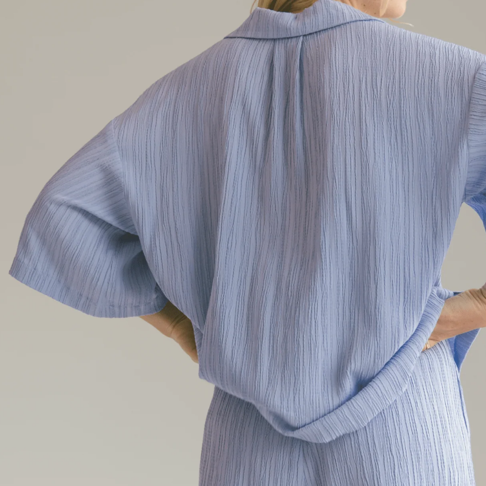 Our Crepe styles are crafted from a beautiful, breathable blend designed for comfort and elegance. Due to the nature of the loose weave, this fabric is more delicate than our cotton and linen pieces and requires extra care to maintain its quality and longevity.