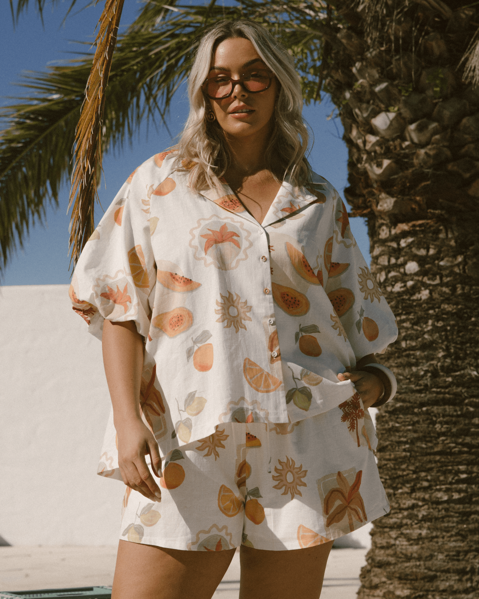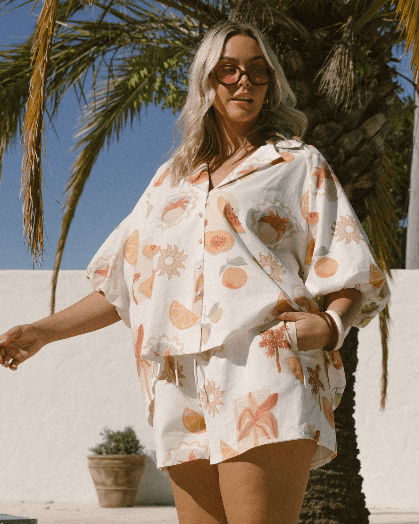 Transition effortlessly from the cozy comfort of your bed to the sun-kissed beauty of the beach with the exceptional Lullaby Club Matilda Shirt.