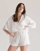 Slip into the kind of comfort you’ll want to live in. Our Matilda Shorts in White are made for slow mornings, salty hair, and everything in between. With their relaxed, boxy fit and lightweight feel, these breathable lounge shorts are your new everyday go-to – from bed to beach and everywhere life takes you.