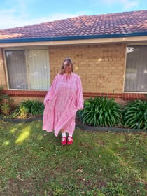 Gorgeous dress. This dress is a statement piece. It’s such a beautiful length and sooooo comfy.