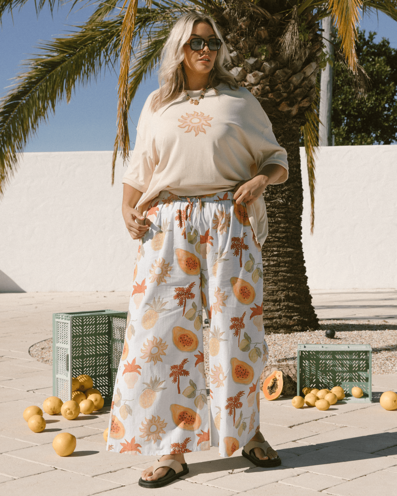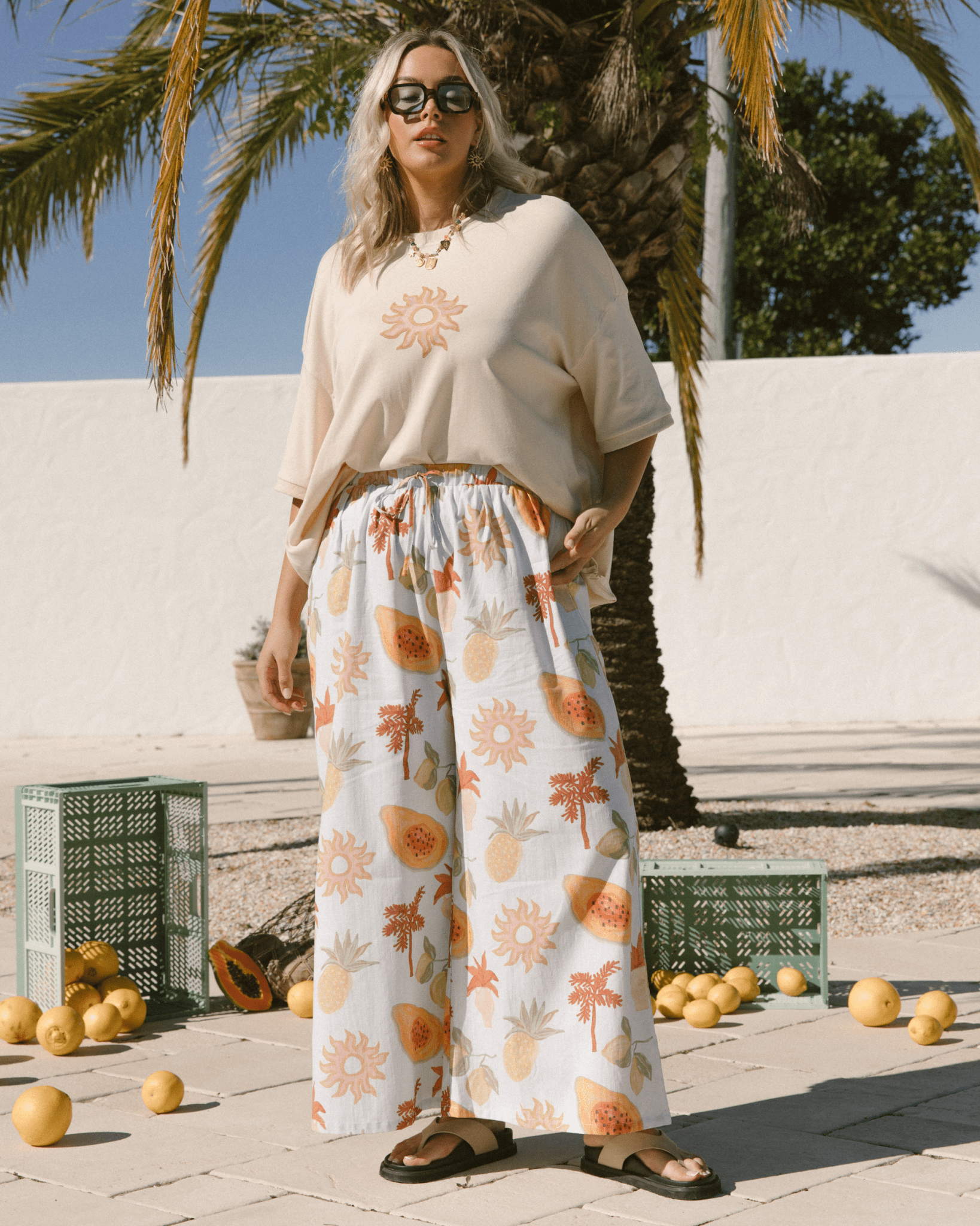 Comfort, but make it cute. Our Posey Pants are basically your new uniform for everything from couch hangs to cocktails. With their oversized, flowy fit and breezy fabric, these pants are ready to take you from bed to beach to “oh, this old thing?” brunch plans without breaking a sweat.