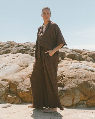 Our Crepe styles are crafted from a beautiful, breathable blend designed for comfort and elegance. Due to the nature of the loose weave, this fabric is more delicate than our cotton and linen pieces and requires extra care to maintain its quality and longevity.